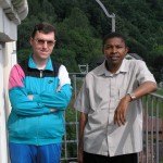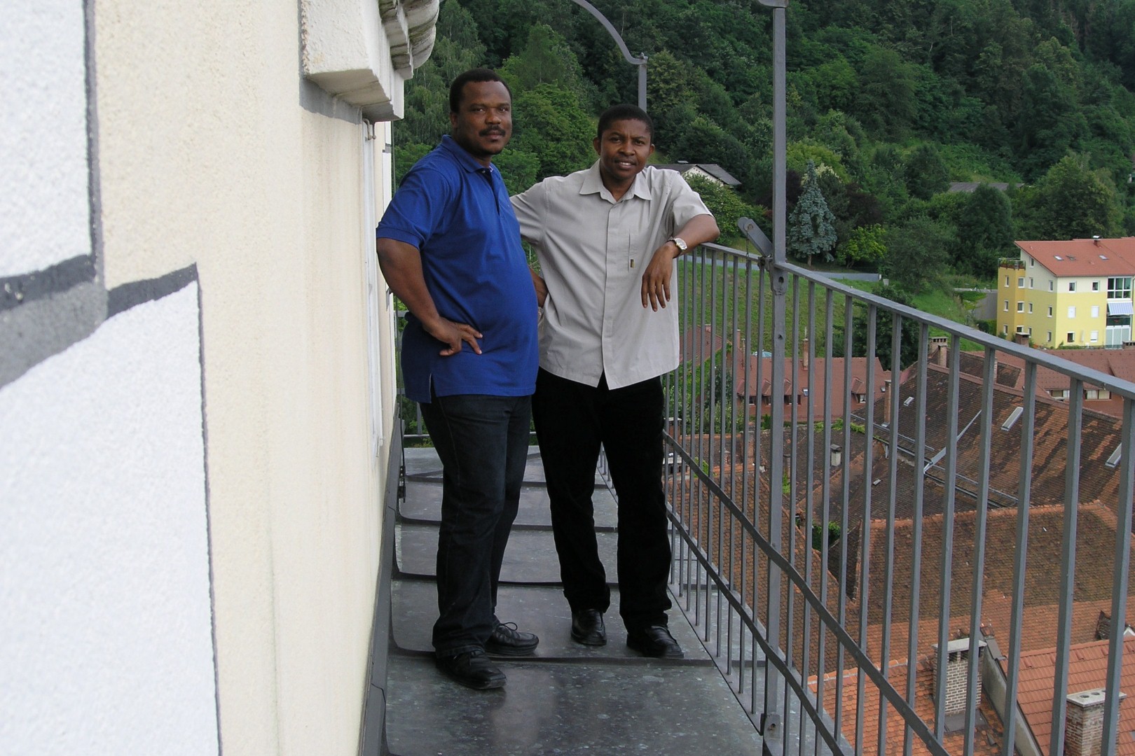 Herr Mag. Bernhard Wagner und Herr Charles Ogbunambala auf der Südseite des Turmbalkons (Aufnahme: Herr Mag. Eliseus Ezeuchenne, © Herr Mag. Bernhard Wagner).