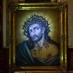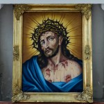 Bild des Hl. Hauptes in abendlicher Beleuchtung welches sich einige Jahre zuvor im Eingangsbereich der Turmkapelle befand und in früherer Zeit im Pfarrhof in einem der dortigen Kanzleiräume (© Herr Mag. Bernhard Wagner).
