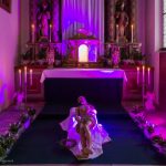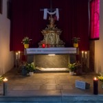 Herz Jesu-Altar als Sakramentsaltar in der Zeit vom Gründonnerstagabend bis zum Karsamstagabend in abendlicher Beleuchtung (© Herr Mag. Bernhard Wagner).