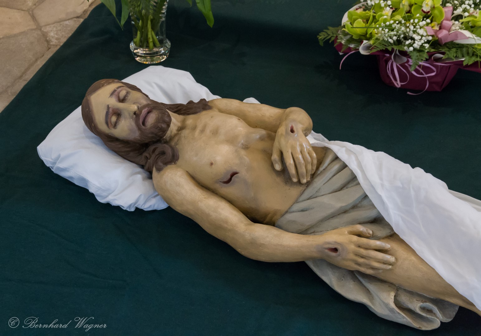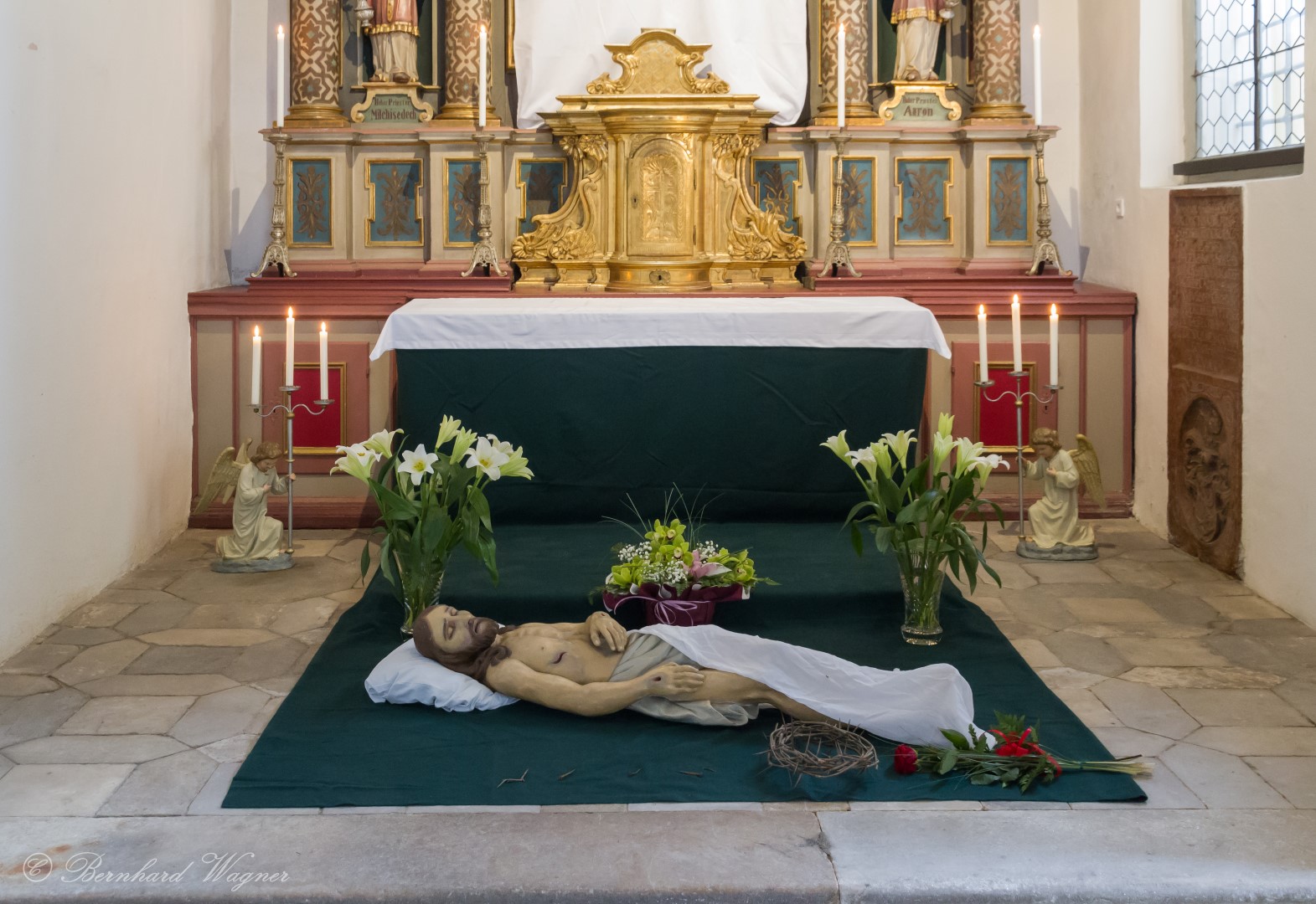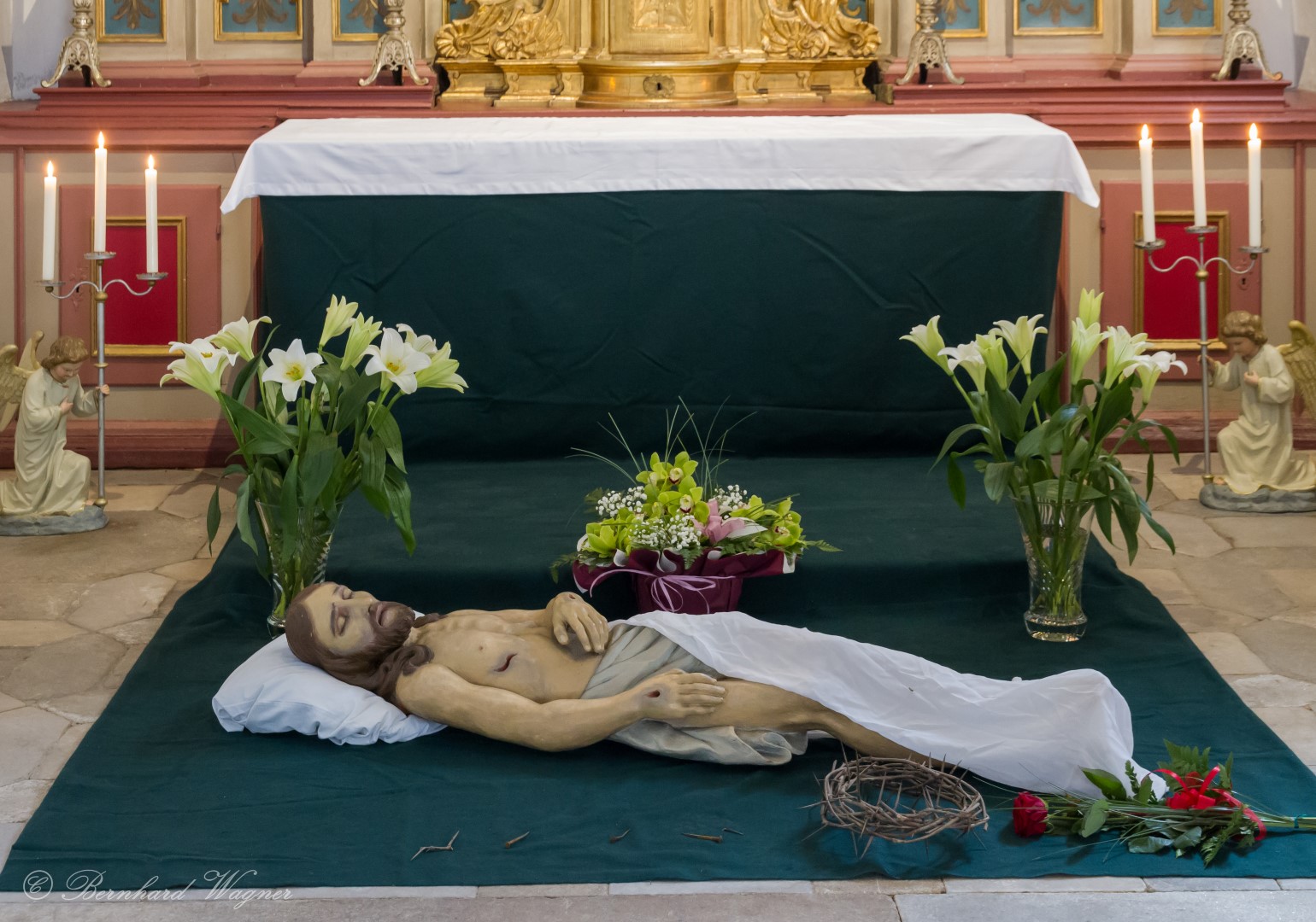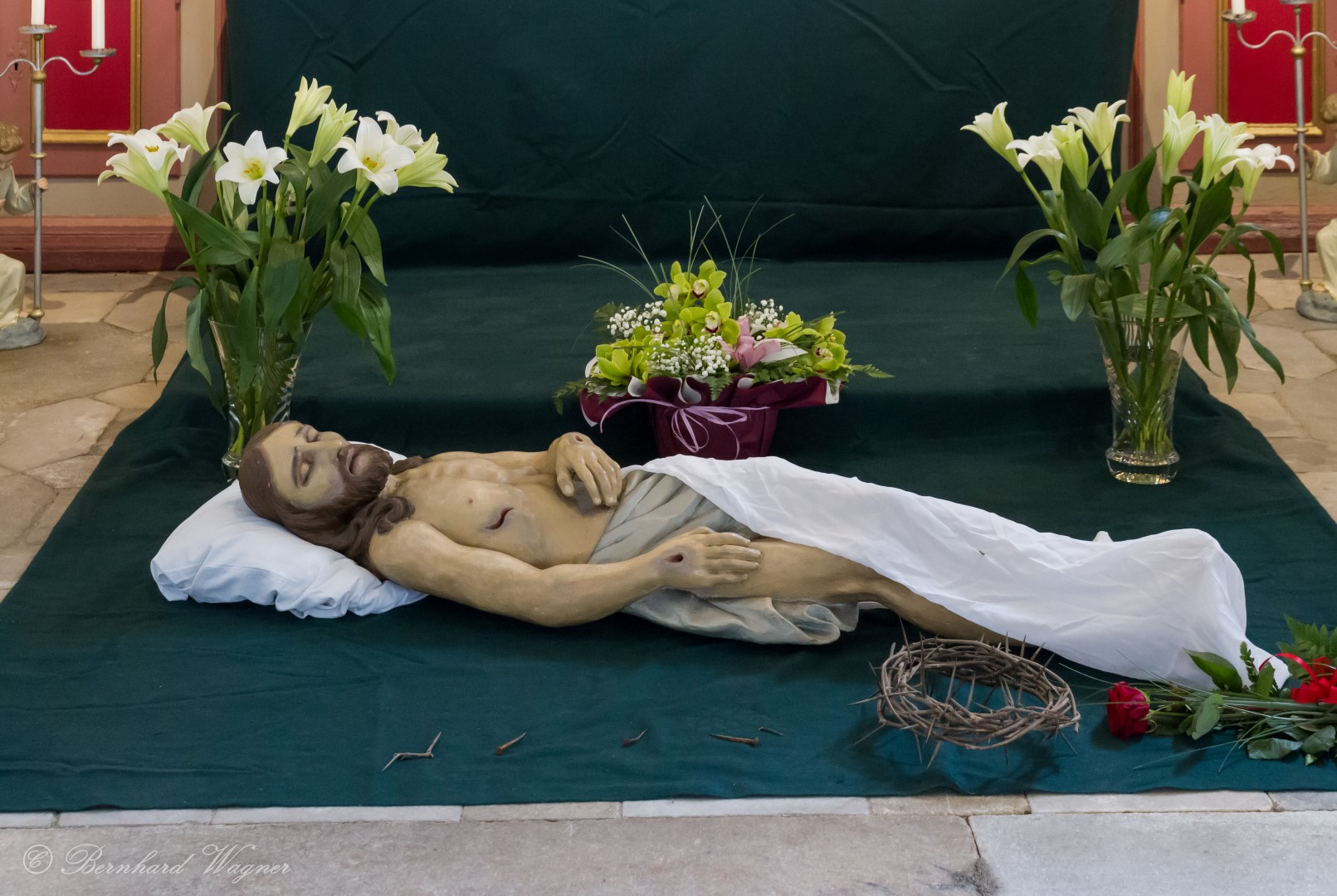 … mit dem Leichnam Jesu, Grabtuch, der Dornenkrone und Blumenschmuck (© Herr Mag. Bernhard Wagner).