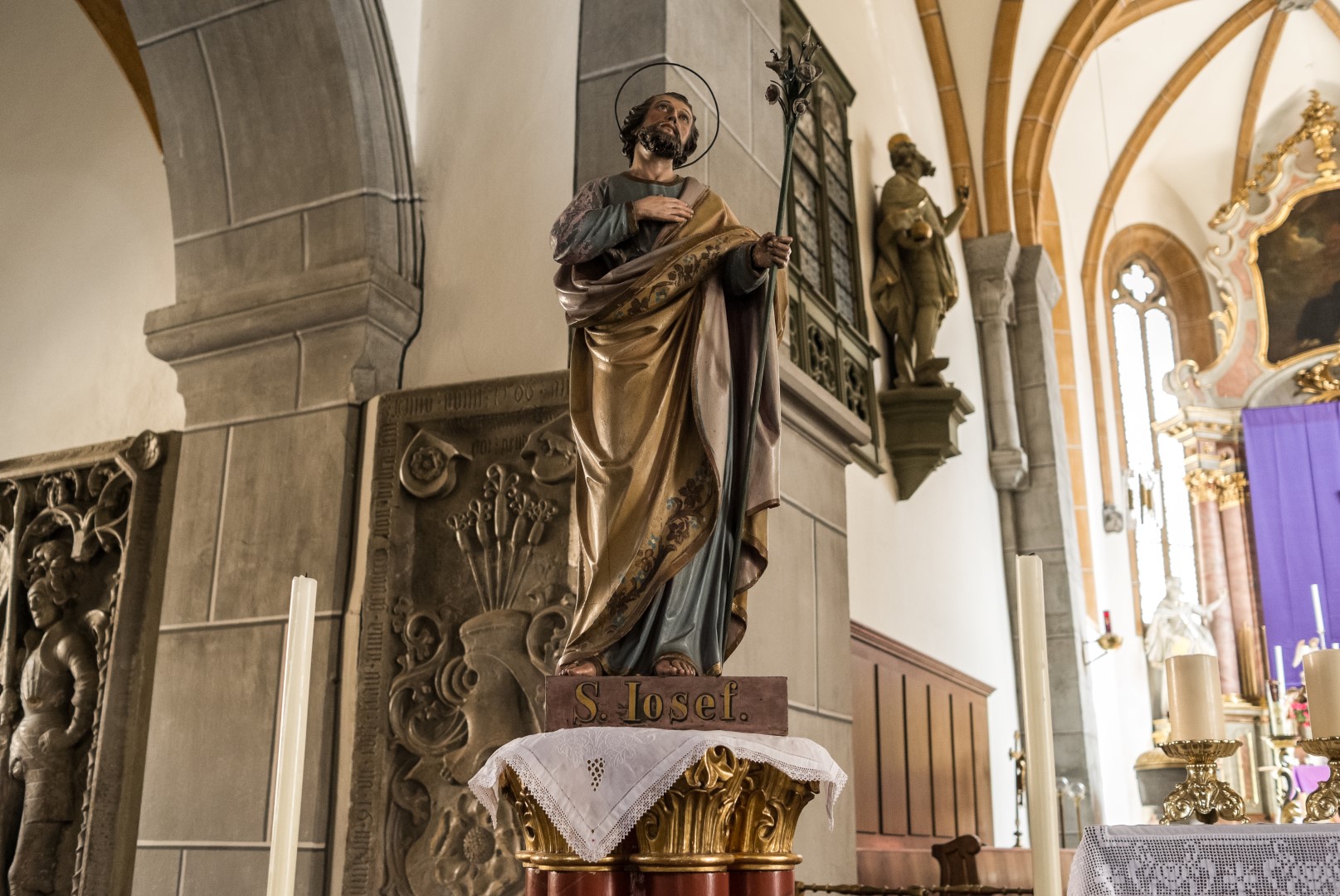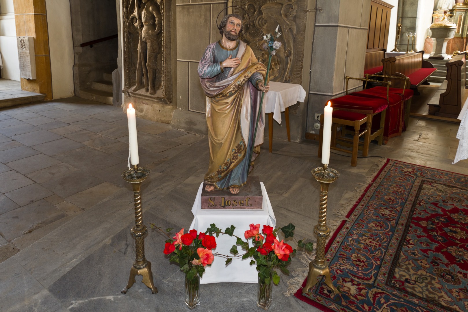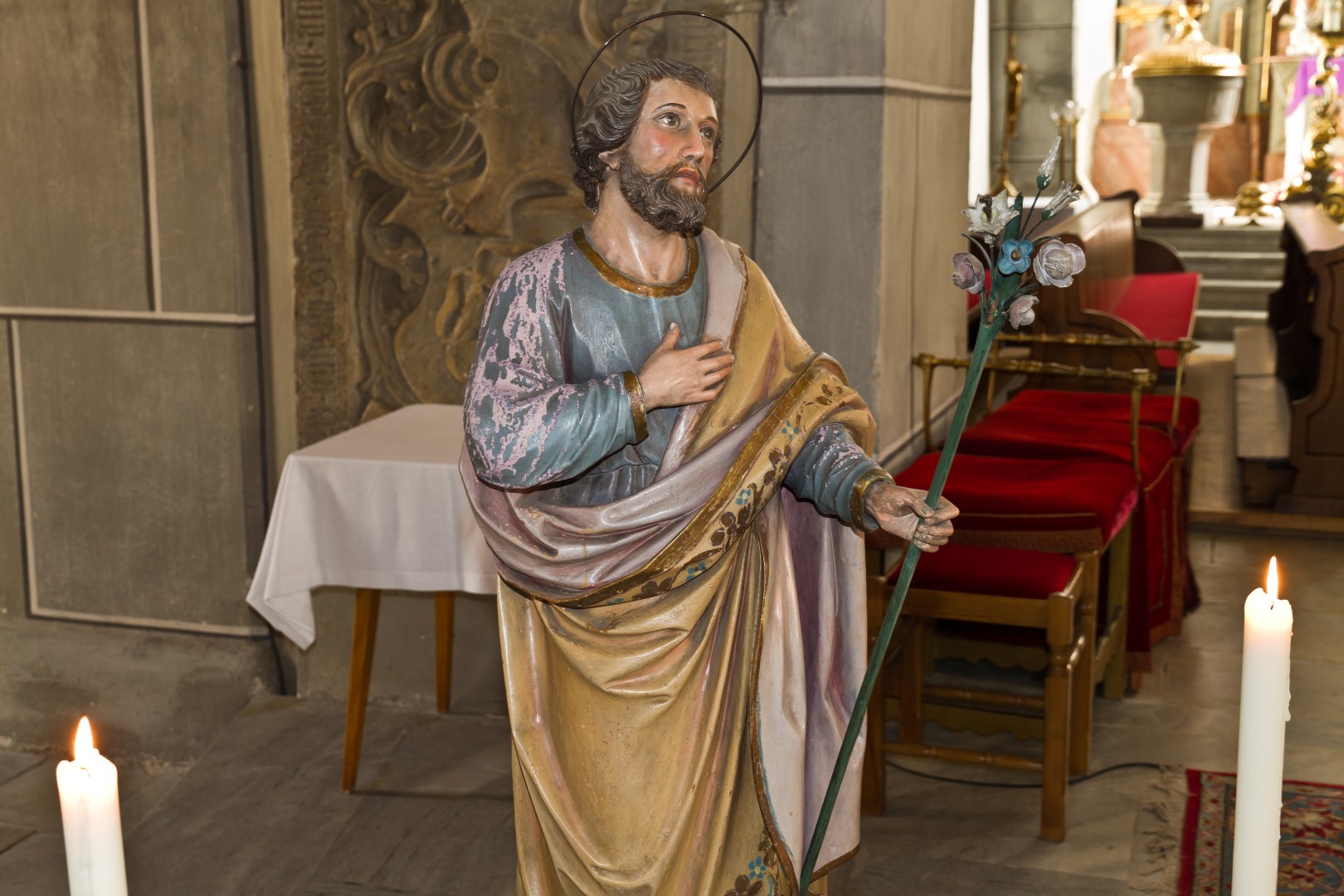 Statue des Hl. Josef, eine weiße Lilie haltend, in einer Nahansicht … (© Herr Mag. Bernhard Wagner)