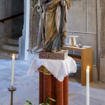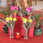 … und in Gesamtansicht auf einer Säule neben dem Volksaltar mit Kerzen und Blumenschmuck (Lilien) (© Herr Mag. Bernhard Wagner).