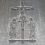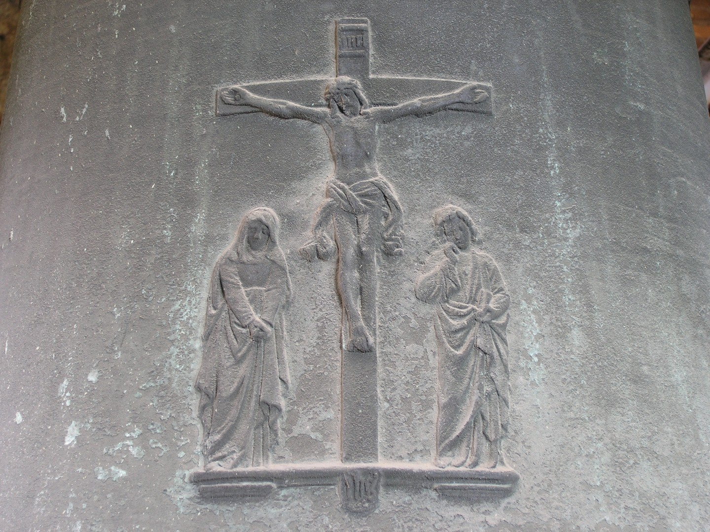 Christus am Kreuz mit seiner Mutter Maria und dem Jünger Johannes am Mantel der zweitgrößten Glocke (© Herr Mag. Bernhard Wagner).