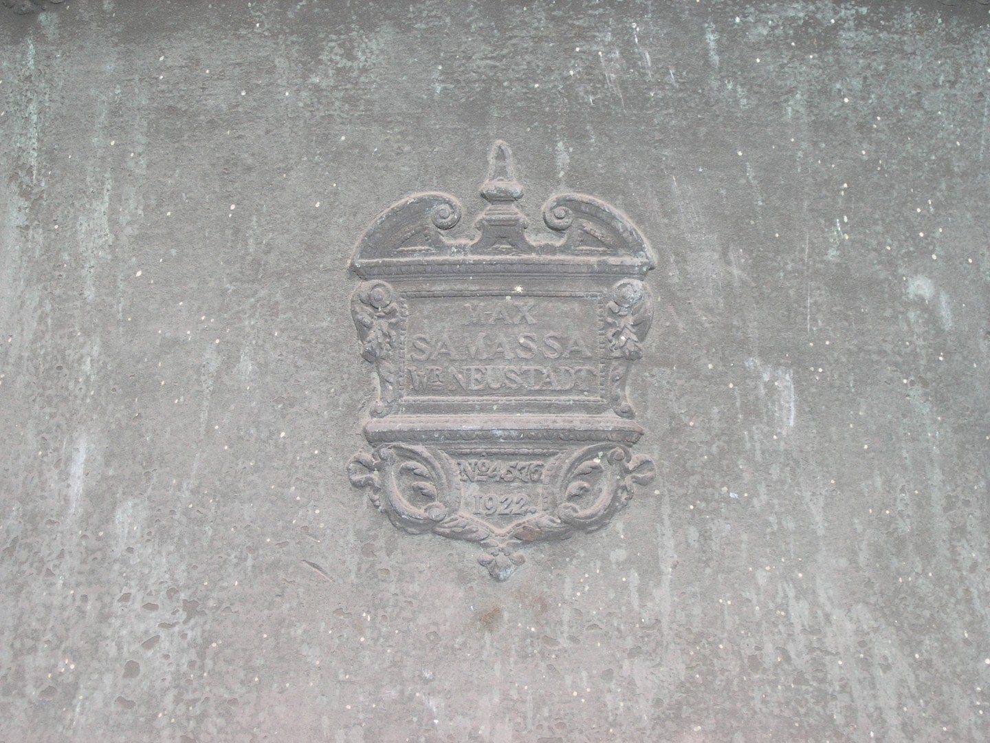 Gießervermerk in mittlerer Höhe des Glockenmantels: Max Samassa, Wr. Neustadt, N° 4576 / 1922 (© Herr Mag. Bernhard Wagner).