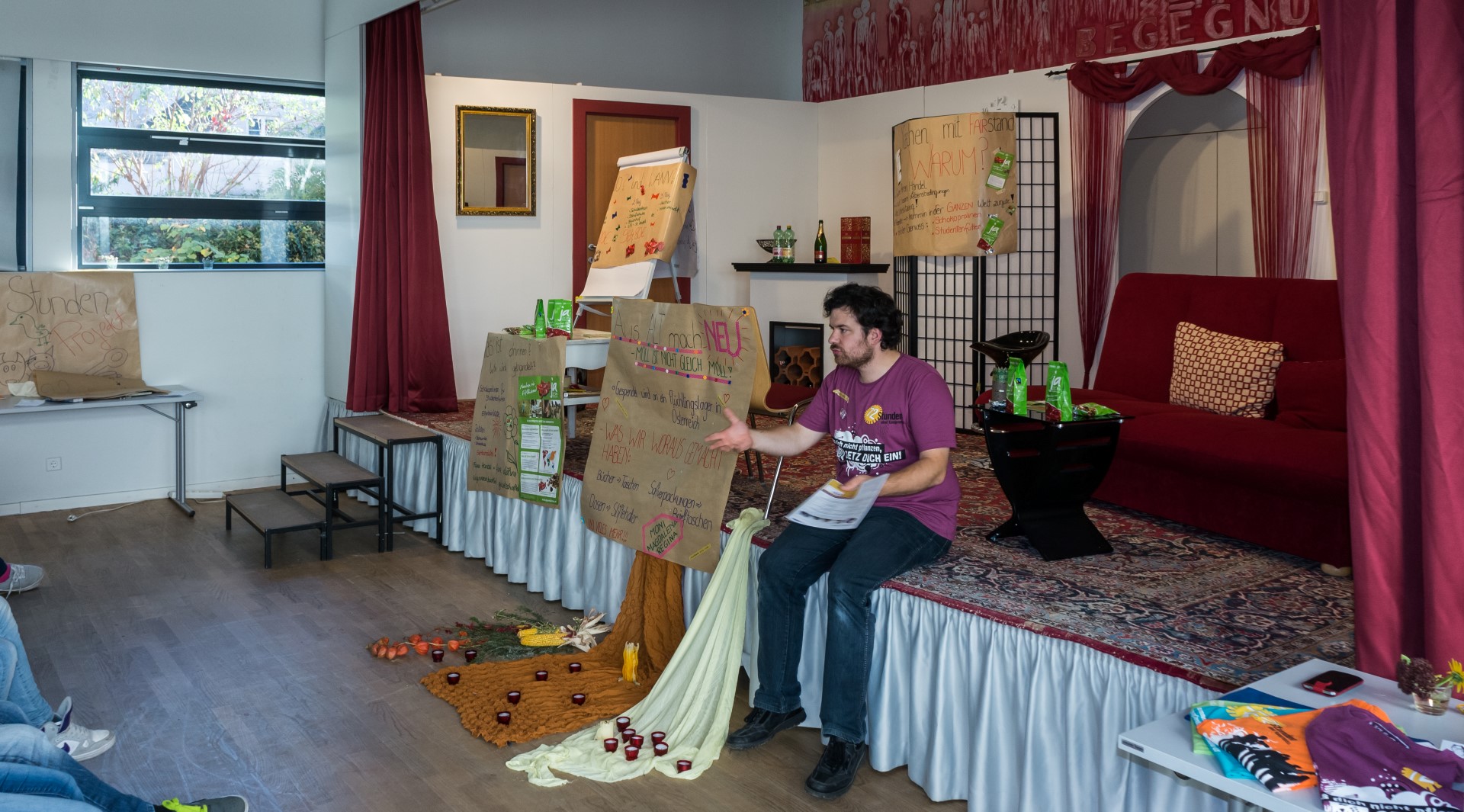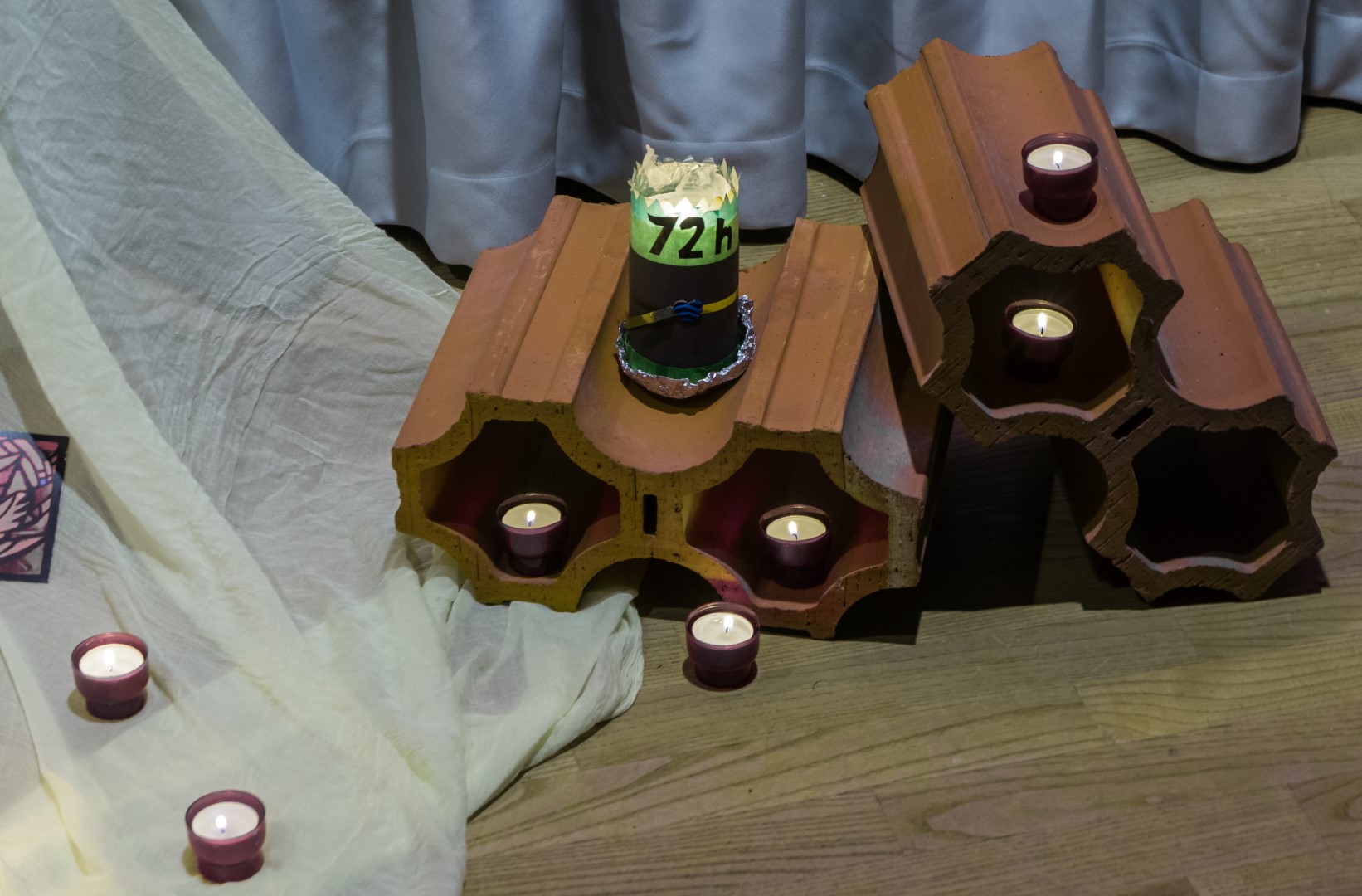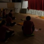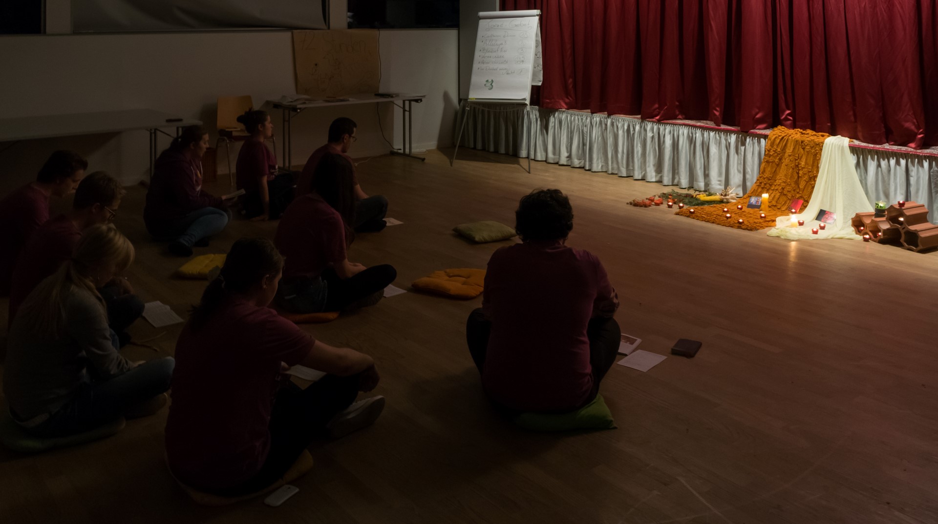Während des Gebets, bestehend abwechselnd aus Taizé-Gesängen und Gebetstexten, wie in der Versöhnungskirche wird dabei am Boden gesessen (© Herr Mag. Bernhard Wagner).