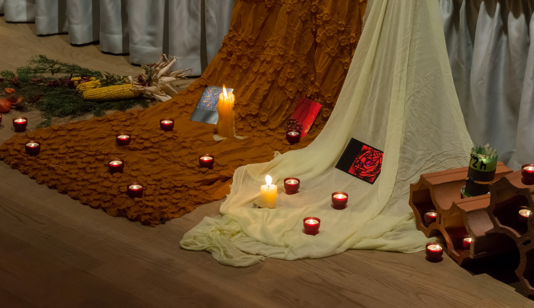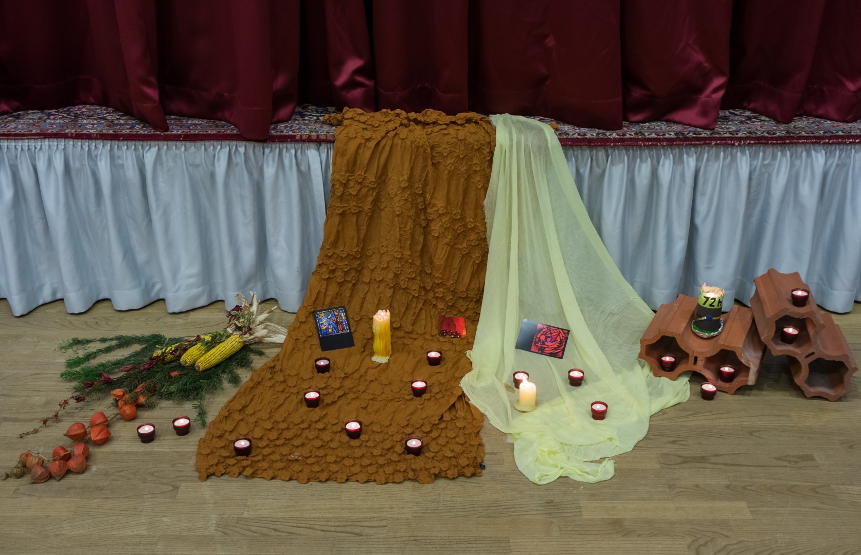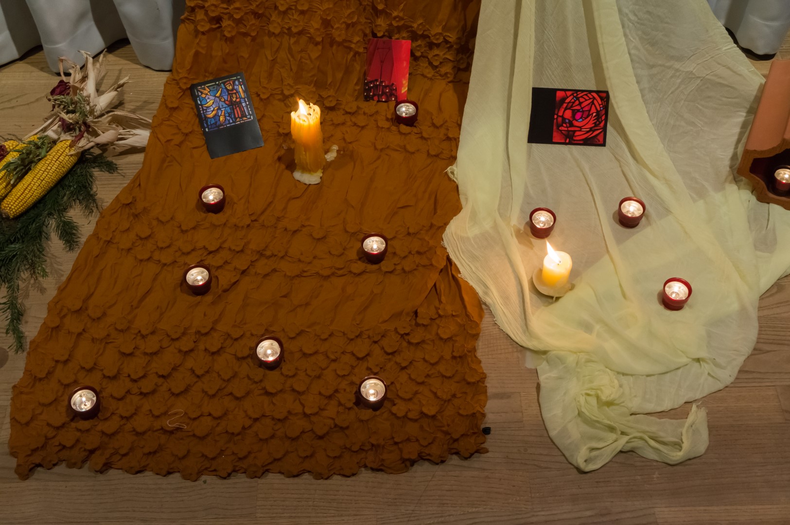 Während des Gebets, bestehend abwechselnd aus Taizé-Gesängen und Gebetstexten, wie in der Versöhnungskirche wird dabei am Boden gesessen (© Herr Mag. Bernhard Wagner).