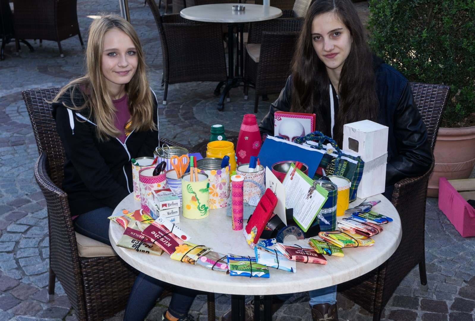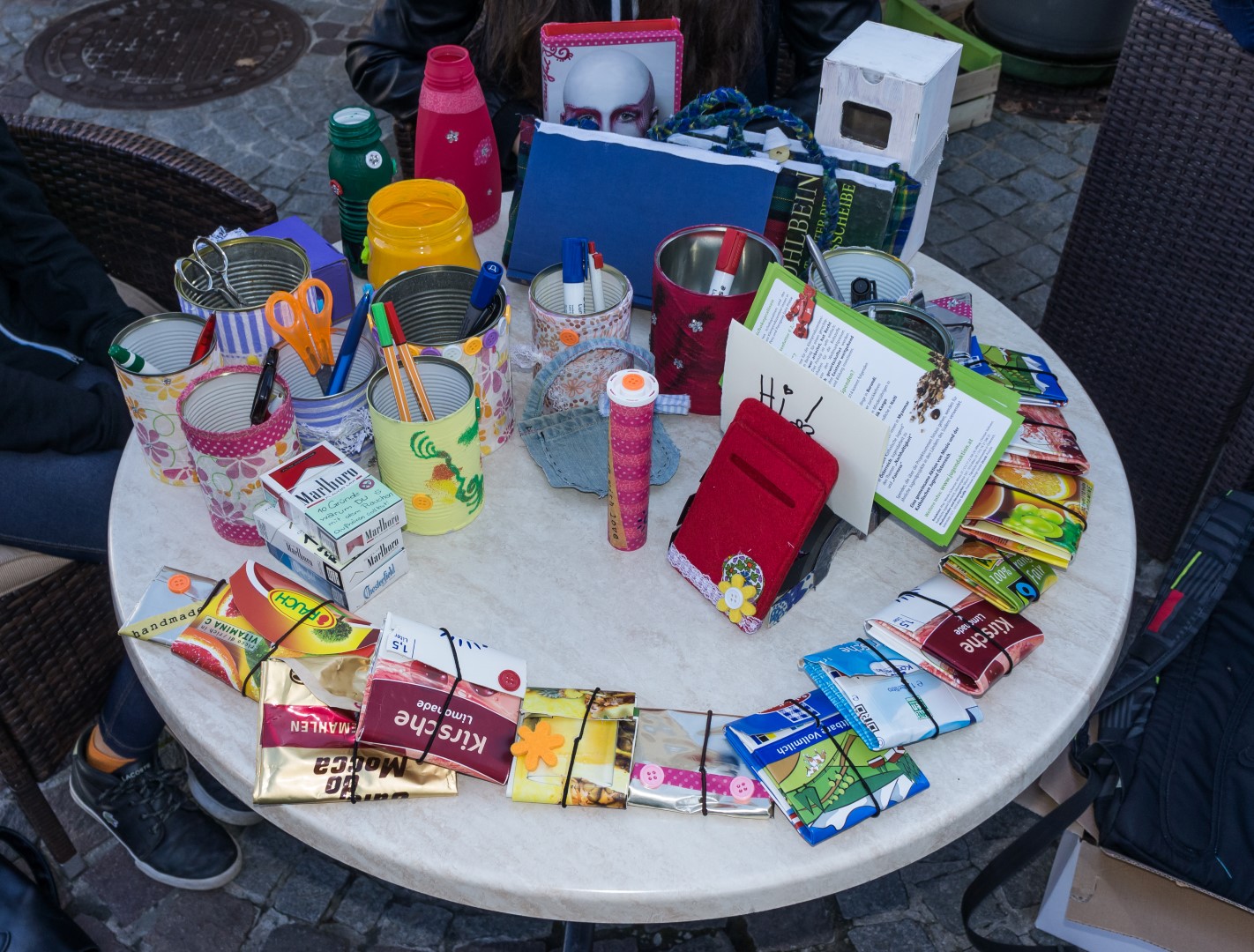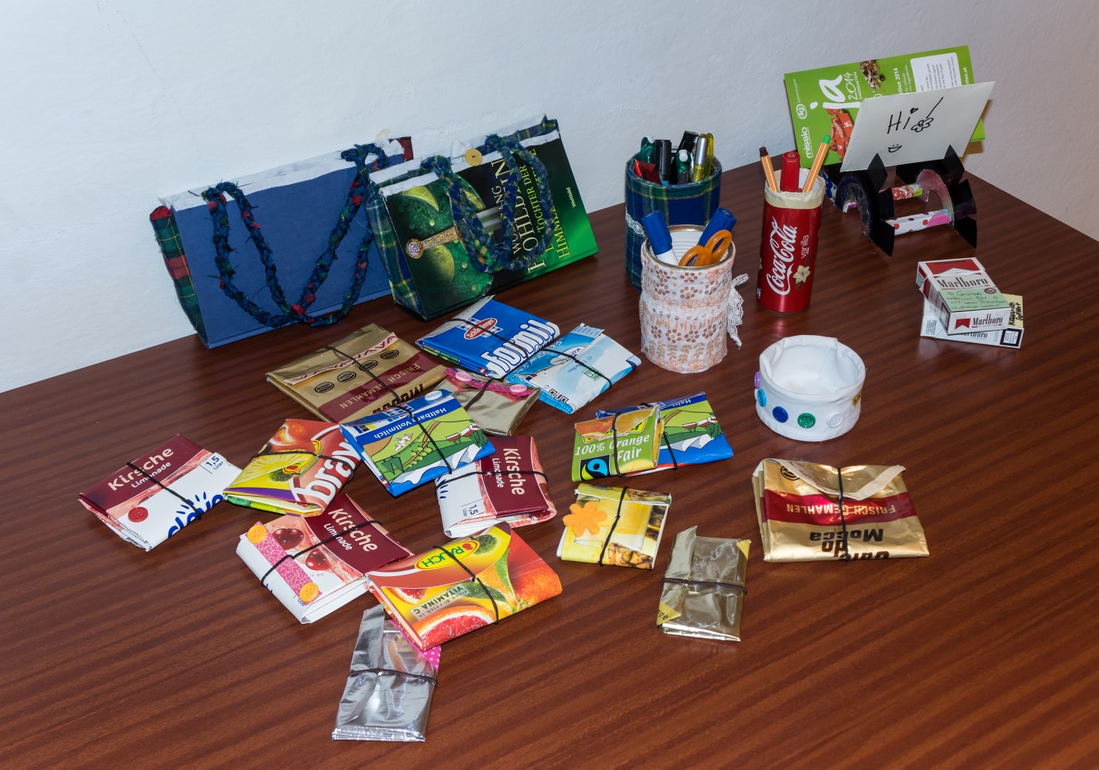 Und das ist bereits ein erstes Ergebnis. Man sieht, welch ansprechende Gegenstände sich aus Müll herstellen lassen. Selbige werden später an interessierte Personen verkauft (© Herr Mag. Bernhard Wagner).