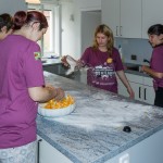 Projekt „Nur ein/e satte/r ArbeiterIn“ — Alle wollen verköstigt werden, und so muss es natürlich auch Jugendliche geben die bereit sind die Tätigkeiten in der Küche zu übernehmen. Das Mädchen am Bild war gleichsam die „Küchenchefin“ und auch Pascal Kogler als einziger Bursche im Team hat eifrig mitgeholfen (© Herr Mag. Bernhard Wagner).