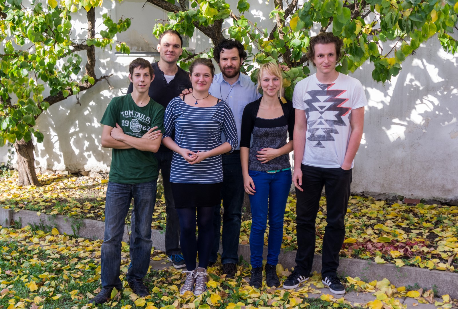 Nun im Innenhof des Pfarrhofs. Von links: Pascal, Thomas, Monika, Jakob, Stephanie und Zivi Marco (© Herr Mag. Bernhard Wagner).