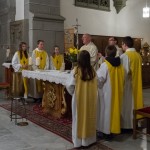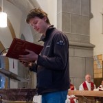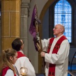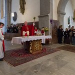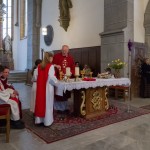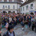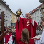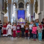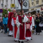 Im Anschluss an diese Feier zog man in Prozession zur Markuskirche wo beim nun folgenden Festgottesdienst einerseits dem feierlichen Einzug Jesu in Jerusalem gedacht wurde, andererseits aber auch schon der Karfreitag, als großer Tag seines Leidens und Sterbens, wesentlich ins Blickfeld kam. Das Passionsgeschehen, in Wolfsberg nicht einfach anhand des Bibeltextes gehört sondern als „Kinderpassion“ in gewisser Weise gespielt, gestalteten dabei Kinder der MI-MA-Gruppe (MinistrantInnen und Markusspatzen) in kindgerechter Weise.