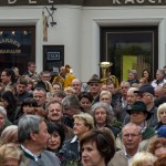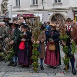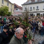 Eine Vielzahl an Gläubigen versammelte sich zur Palmweihe am Hohen Platz um die Mariensäule, unter ihnen selbstverständlich auch die Mitglieder der Brauchtumsgruppe Wolfsberg-Lavanttal mit prächtigen, eigengefertigten Palmbesen. Ein Bläserquartett der Stadtkapelle übernahm die musikalische Gestaltung.