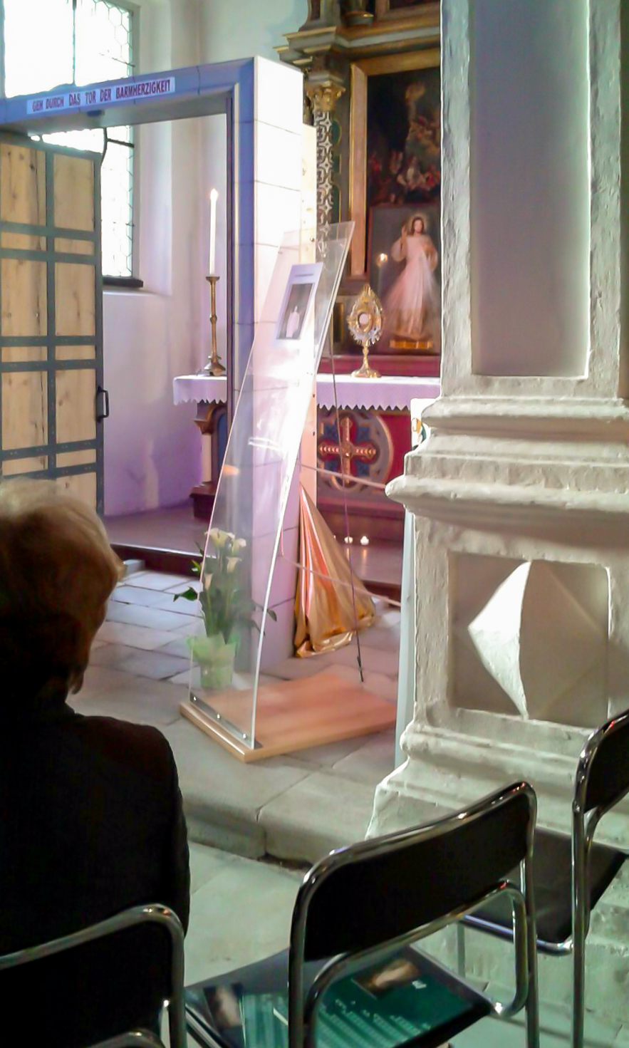 In einer Seitenkapelle der Markuskirche wurde symbolisch zum Jahr der Barmherzigkeit eine Pforte von Tischlermeister Klaus Penz aufgestellt. Am Abend des Weißen Sonntag der auch Sonntag der göttlichen Barmherzigkeit genannt wird, wurde die Pforte geöffnet. Nach der Einführung durch Kaplan Krzysztof Kranicki wurde das Allerheiligste ausgesetzt und zur Pforte gebracht wo man eine Anbetung hielt. Neben Gebeten wurde die Andacht von Frauen musikalisch umrahmt und es bestand die Gelegenheit zur Beichte. Zum Abschluss folgte der Rosenkranz zur Barmherzigkeit Gottes, der auf einem Kärtchen in den Kirchenbänken ausgeteilt war. Währenddessen konnte man zur Pforte gehen und Gebete oder Anliegen auf Zettel schreiben und sie dort hinlegen oder eine Kerze entzünden und in Gedanken und Stille kurz verweilen. Im Anschluss wurde die heilige Messe gefeiert.