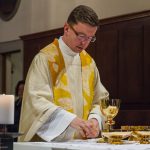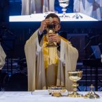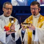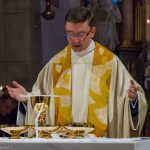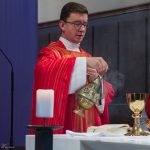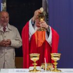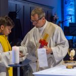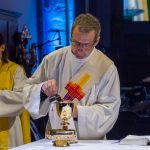 Der vierte und letzte Teil, die Eucharistiefeier, eröffnete wie bei jedem Gottesdienst mit der Bereitung der Opfergaben und nahm ihren weiteren Verlauf über Eucharistisches Hochgebet, Vaterunser, Agnus Dei und Kommunionspendung bis hin zum Schlussgebet.