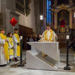 Beginnend um 19.00 Uhr feierte Pfarrprovisor Mag. Dr. Christoph Kranicki gemeinsam mit der Gemeinde die erhabene Gründonnerstagsliturgie. In seiner Predigt ging er auf die tiefe Bedeutung des Triduum Sacrum ein und verglich es mit einer „Umarmung“ Gottes für uns Menschen.