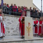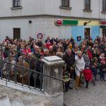 Eine Vielzahl an Gläubigen, von Kindern bis zu Seniorinnen und Senioren, fand sich am Platz vor der Musikschule Wolfsberg, am Stiegenaufgang zum Markusplatz (Schulstiege) und auch noch beim Stiegengeländer am Markusplatz selbst ein um gemeinsam mit Pfarrprovisor Mag. Dr. Christoph Kranicki, elf Ministranten und weiteren Mitarbeiterinnen und Mitarbeitern der Pfarre beginnend mit der Palmweihe um 9.30 Uhr den Palmsonntag zu feiern. Der Schulplatz wurde diesmal gewählt, da baustellenbedingt im Zusammenhang mit der Erneuerung des Hohen Platzes die Palmweihe wie sonst üblich bei der dortigen Mariensäule nicht erfolgen konnte.