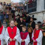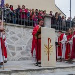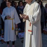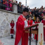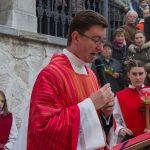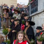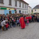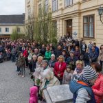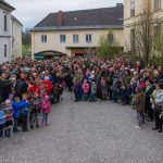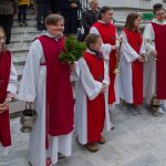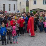 Schließlich zogen nach der Segnung der Palmzweige Priester und Ministranten sowie viele weitere der versammelten Gläubigen mit typischen Palmbesen aus unserer Gegend durch das Hauptportal in die Markuskirche ein. Wegen der kurzen Distanz zwischen Schulplatz und Kirche musste in diesem Jahr jedoch auf eine Palmprozession im eigentlichen Sinn verzichtet werden wie man diese sonst kennt wenn die Palmweihe am Hohen Platz stattfindet.