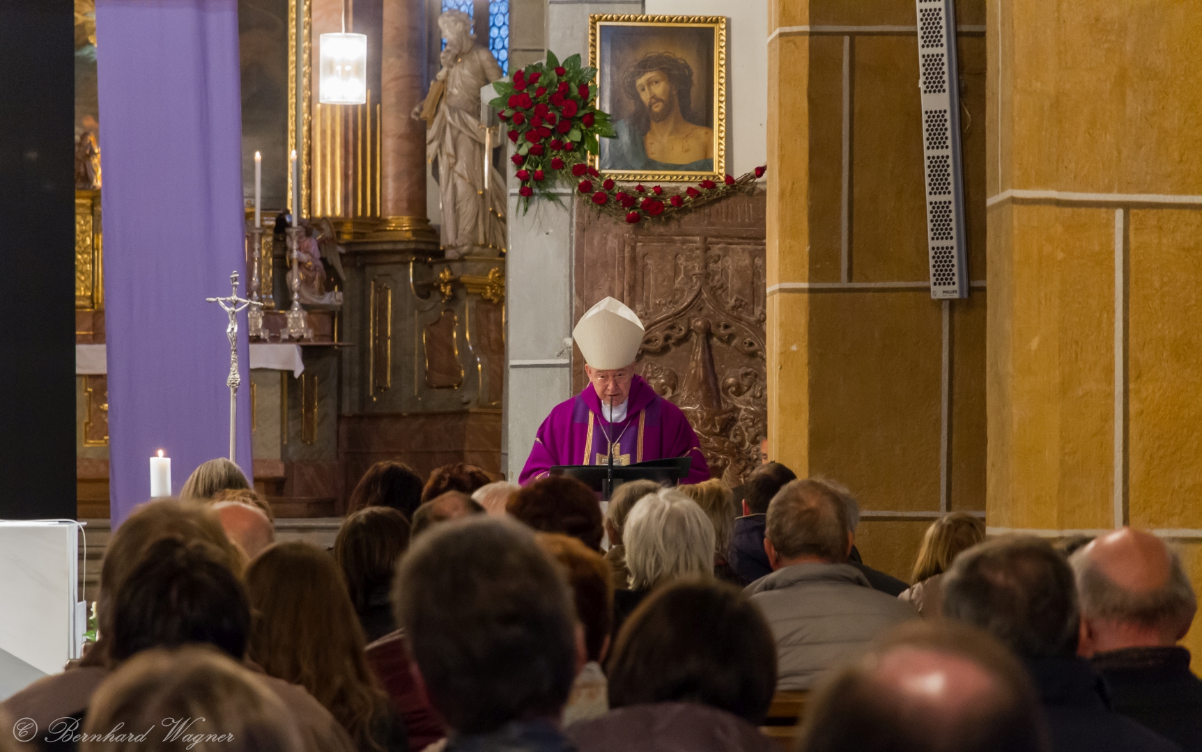 Während dem der Kreuzwegandacht ab 18.30 Uhr folgenden Gottesdienst mit Beginn um 19.00 Uhr wurde den Gläubigen die Ehre zuteil, den Erzbischof, der auch Hauptzelebrant war, bei seiner ersten Hauptandachtspredigt zu hören.