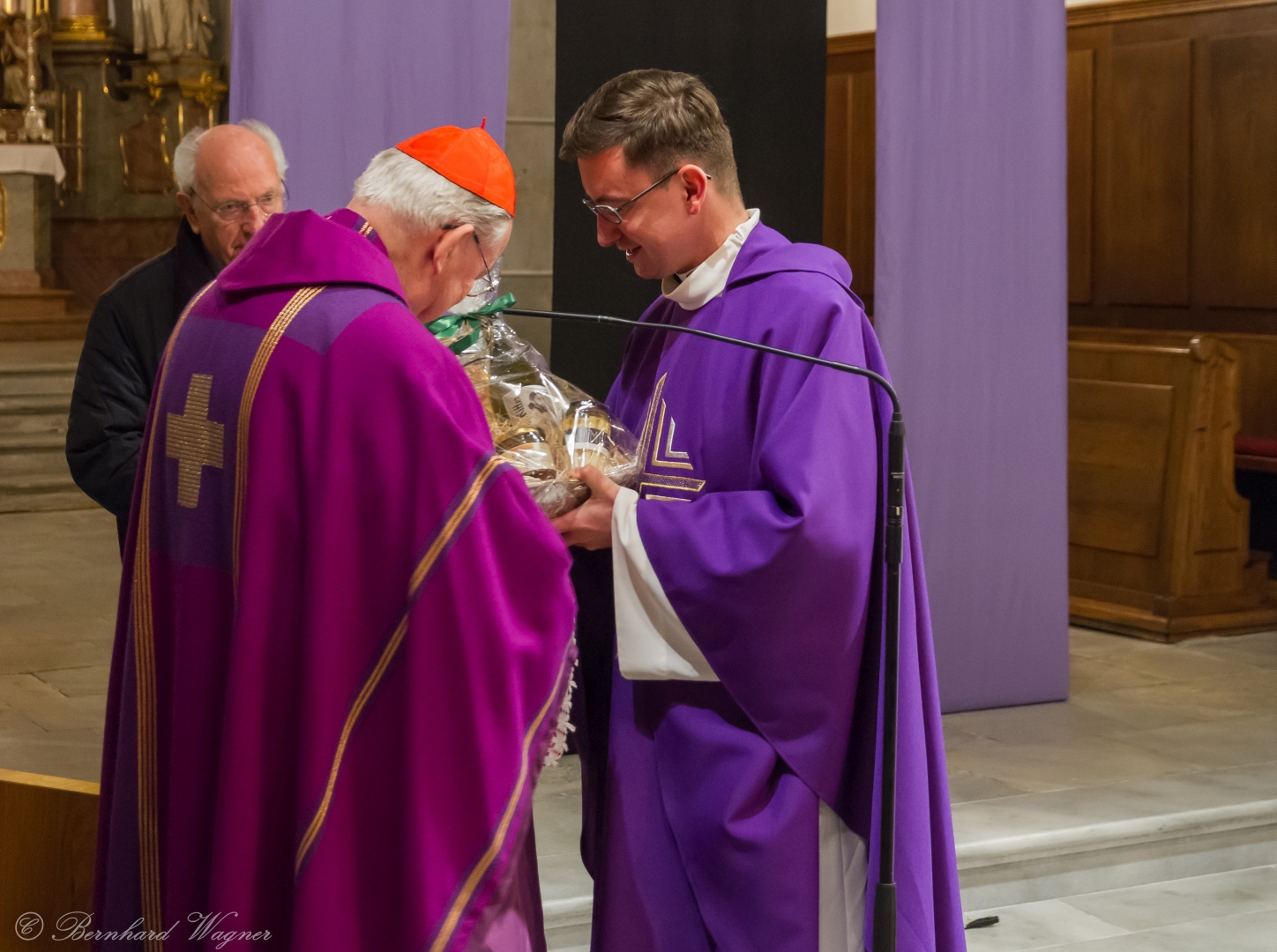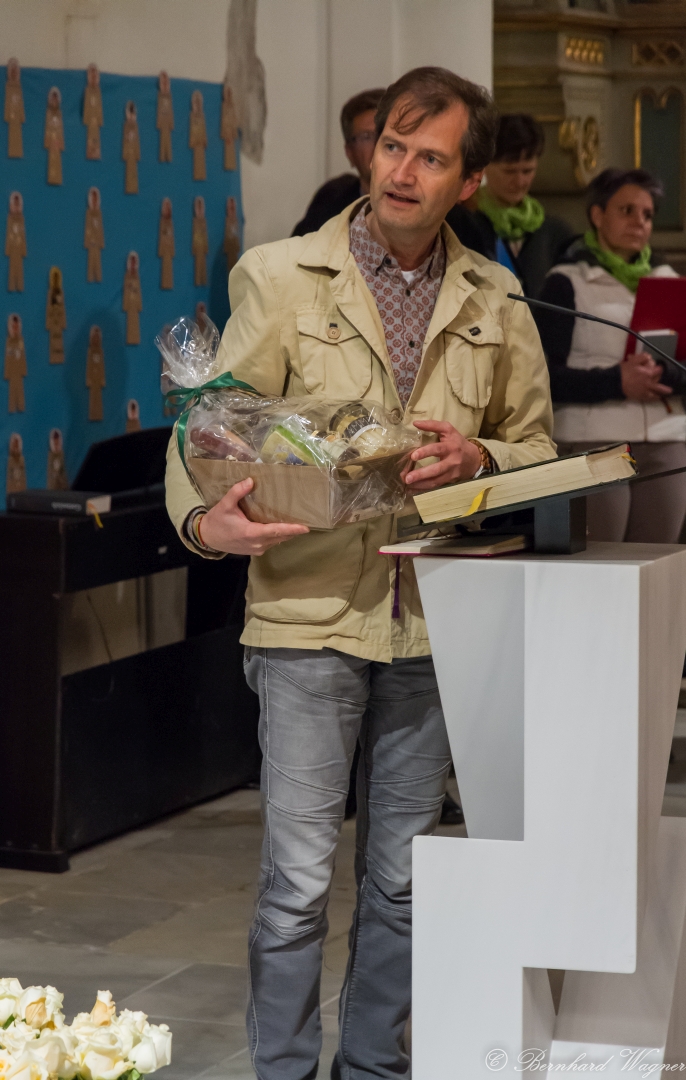 Auch Abt Hafner OSB wurde am Ende der Messfeier im Zuge der Dankesworte durch Pfarrprovisor Kranicki wie schon den Predigern vor ihm ein Geschenkskorb überreicht.