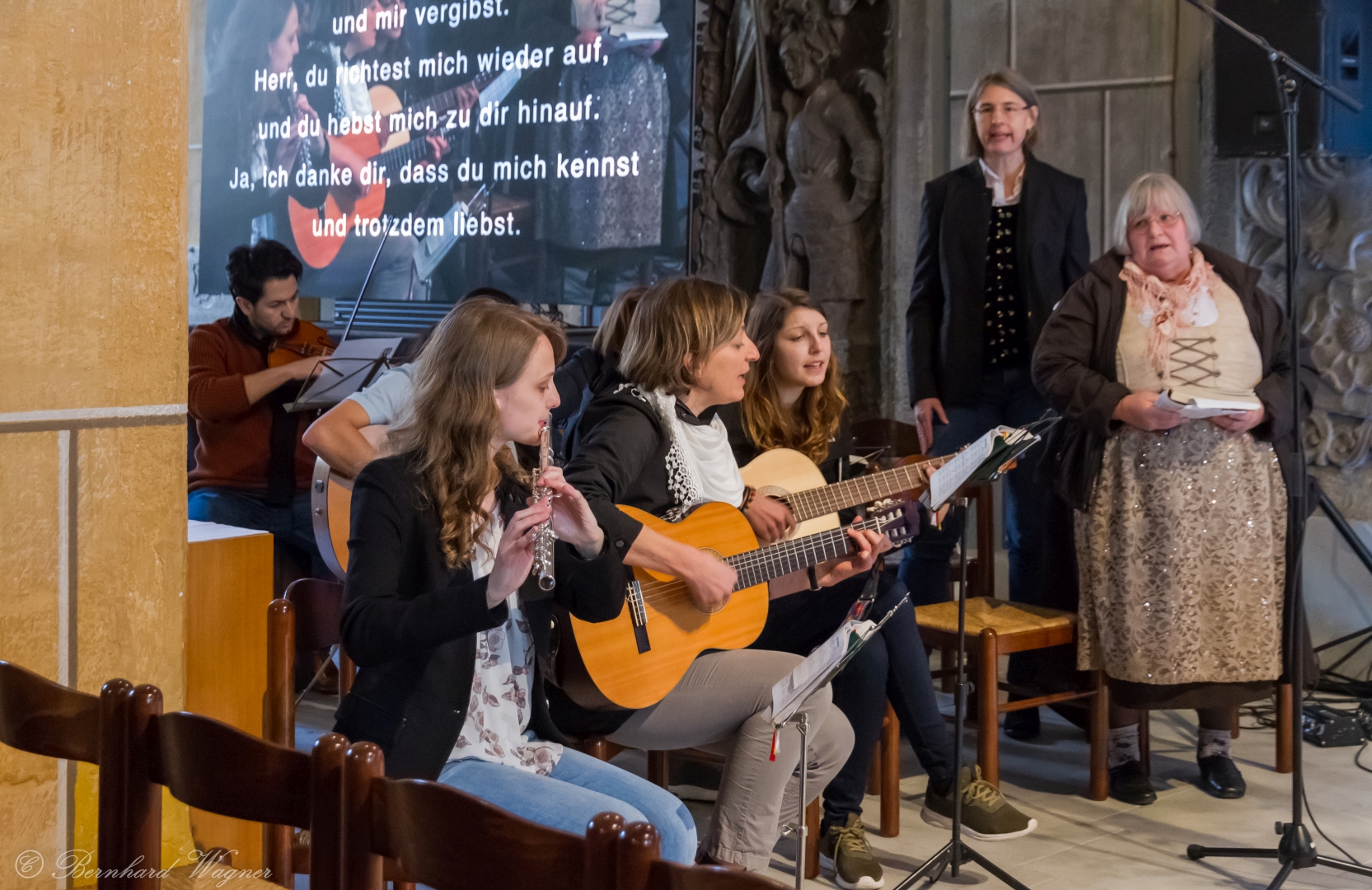 Diese boten den Zuhörerinnen und Zuhörern ein sehr eindrucksvolles Programm welches noch zusätzlich durch die Lesung einzelner Seligpreisungen aus Jesu Bergpredigt durch Frau Catharina Senger am Ambo zwischen den Musikstücken bekräftigt wurde. Musik und textlicher Inhalt waren so gleichsam aufeinander abgestimmt.