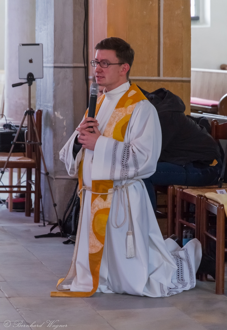 Am Abend des 19. April mit Beginn um 19.00 Uhr feierte Pfarrprovisor Mag. Dr. Christoph Kranicki mit den Anwesenden die aus Wortgottesdienst, Kreuzverehrung und Kommunionfeier bestehende Karfreitagsliturgie.