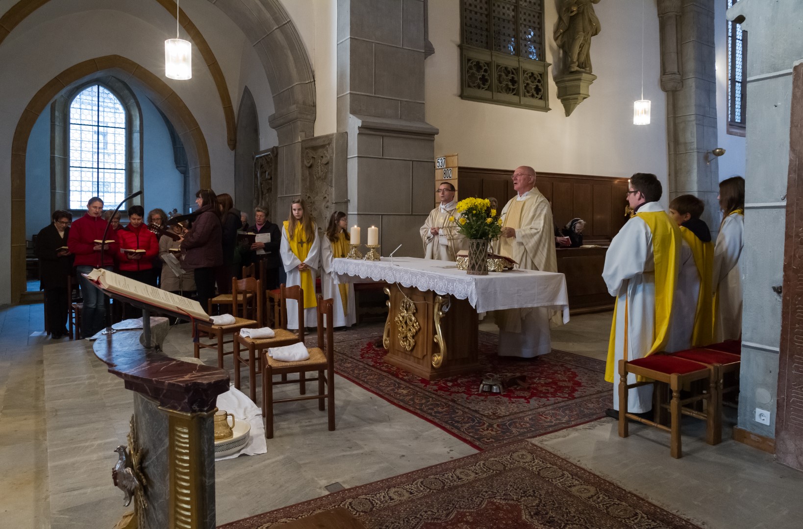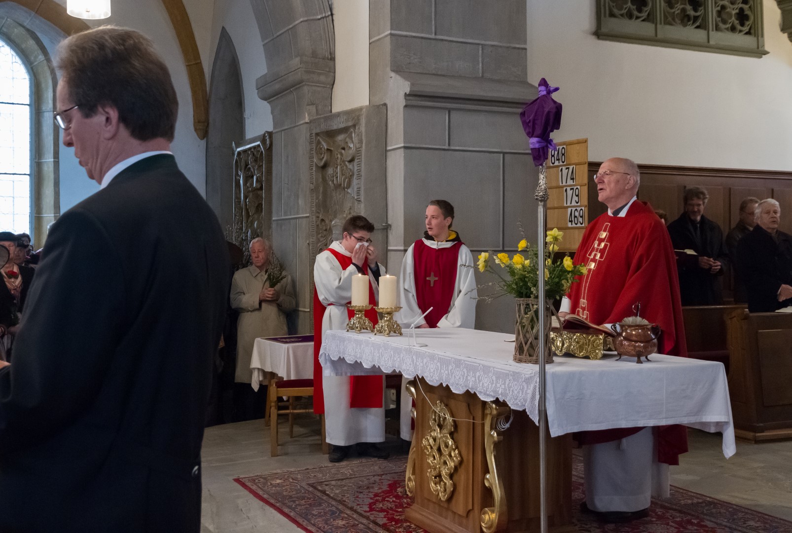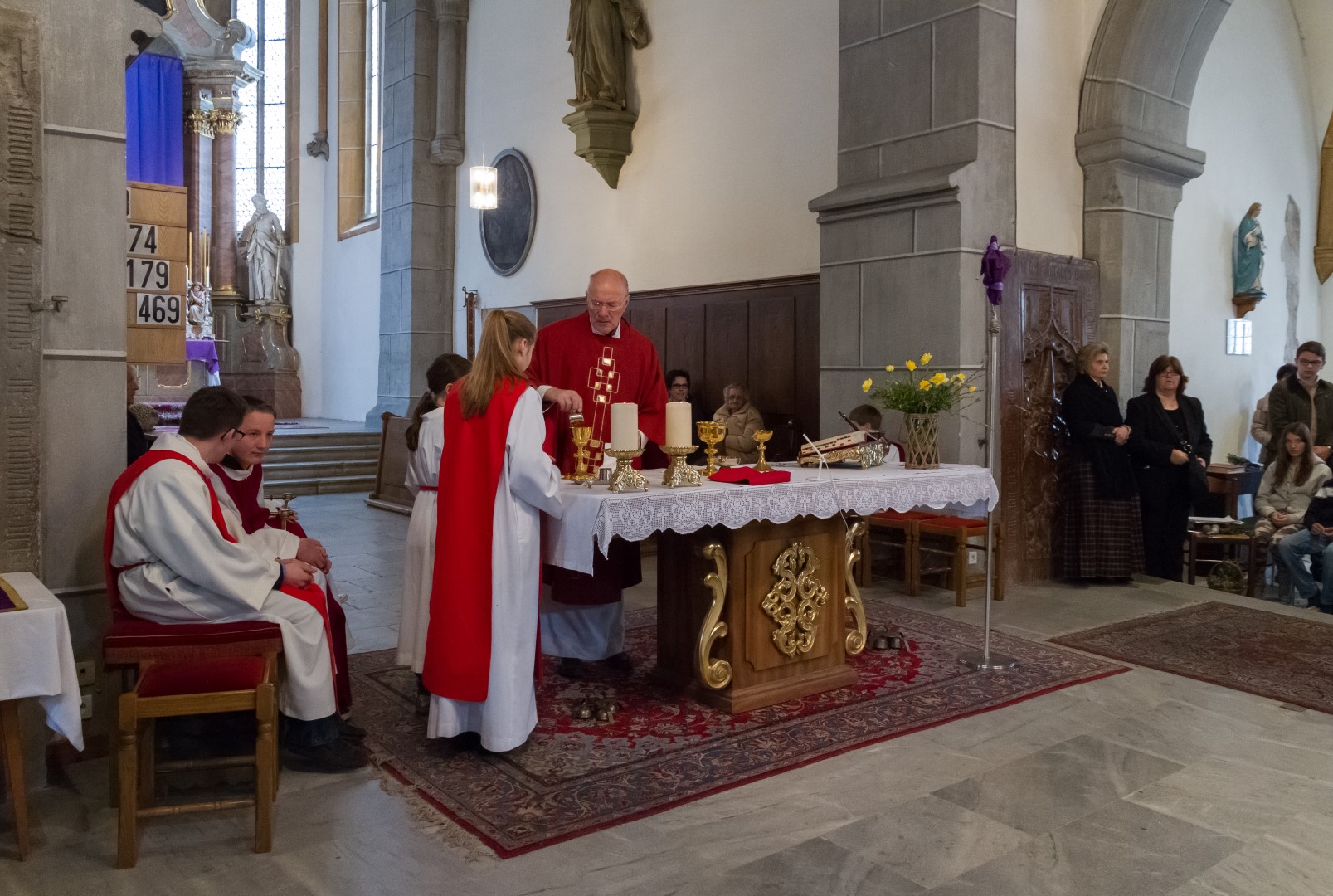 Im Anschluss an diese Feier zog man in Prozession zur Markuskirche wo beim nun folgenden Festgottesdienst einerseits dem feierlichen Einzug Jesu in Jerusalem gedacht wurde, andererseits aber auch schon der Karfreitag, als großer Tag seines Leidens und Sterbens, wesentlich ins Blickfeld kam. Das Passionsgeschehen, in Wolfsberg nicht einfach anhand des Bibeltextes gehört sondern als „Kinderpassion“ in gewisser Weise gespielt, gestalteten dabei Kinder der MI-MA-Gruppe (MinistrantInnen und Markusspatzen) in kindgerechter Weise.