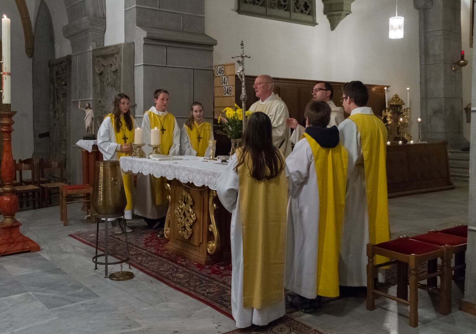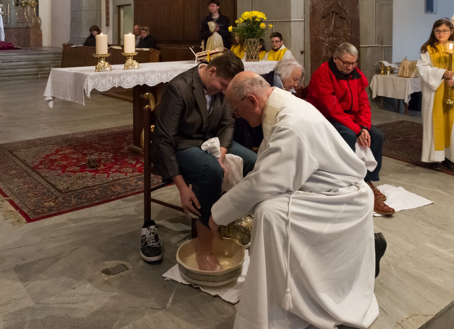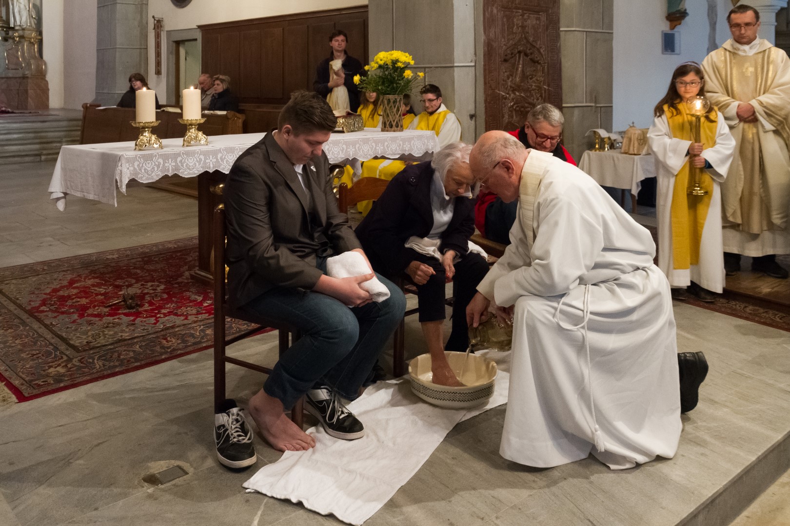 Am Abend des 17. April, beginnend um 19.00 Uhr, zelebrierten Dechant Mag. Engelbert Hofer und Kaplan Mag. Marek Ogrodowicz die Gründonnerstagsliturgie. Die im Rahmen des Evangeliums erfolgte, symbolische Fußwaschung nahm Dechant Hofer an insgesamt drei Personen der Pfarre, einer Frau und zwei Männern, vor. Mit diesem Ritus wird jener Fußwaschung gedacht die Jesus an seinen Jüngern im Abendmahlsaal vollzog.