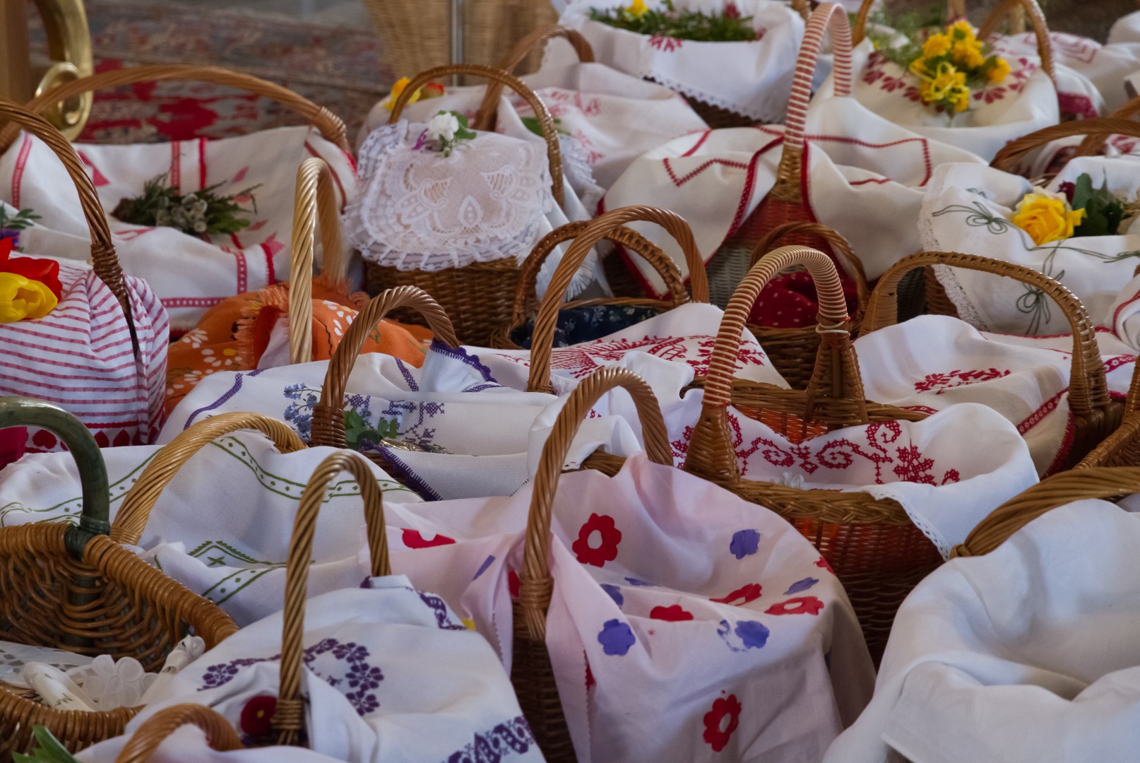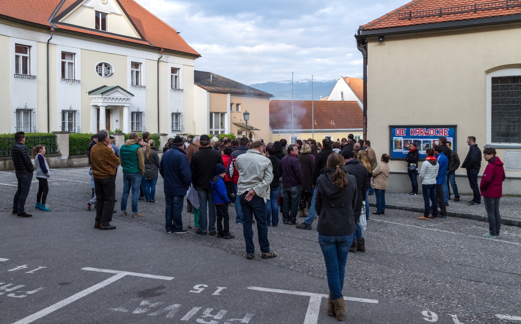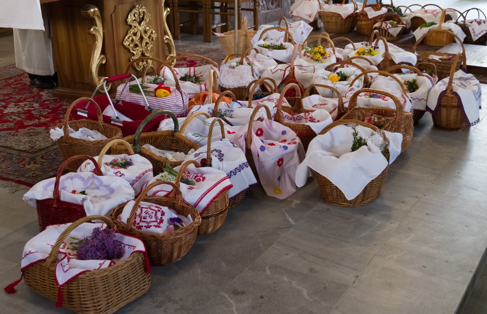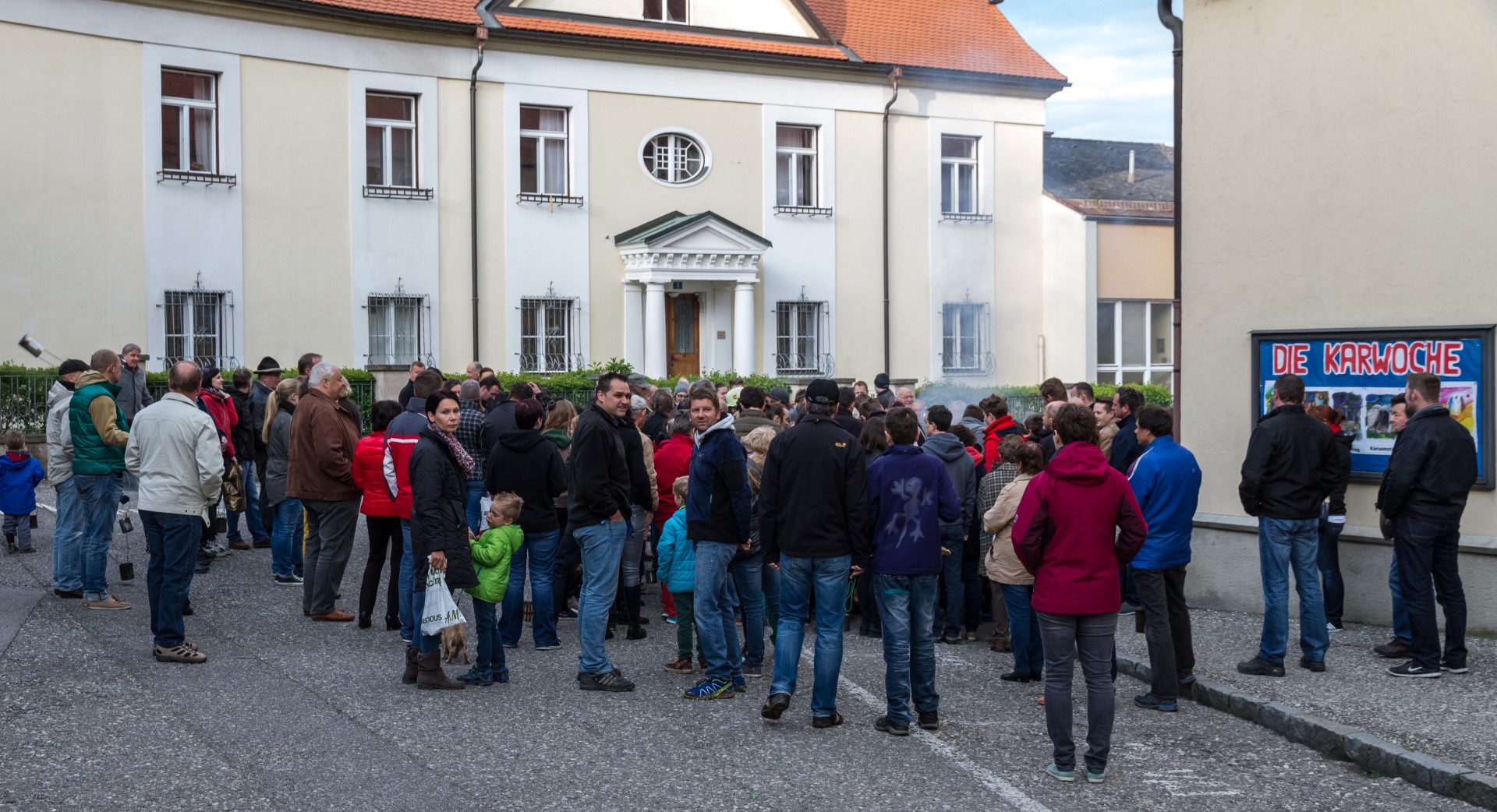 Eine Vielzahl an Gläubigen versammelte sich zur Palmweihe am Hohen Platz um die Mariensäule, unter ihnen selbstverständlich auch die Mitglieder der Brauchtumsgruppe Wolfsberg-Lavanttal mit prächtigen, eigengefertigten Palmbesen. Ein Bläserquartett der Stadtkapelle übernahm die musikalische Gestaltung.