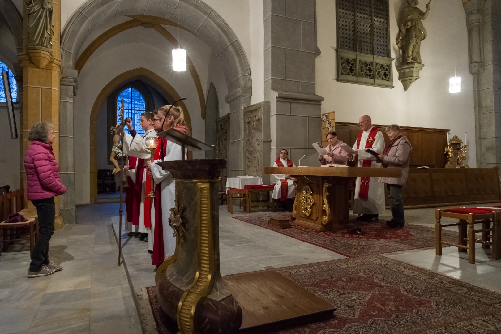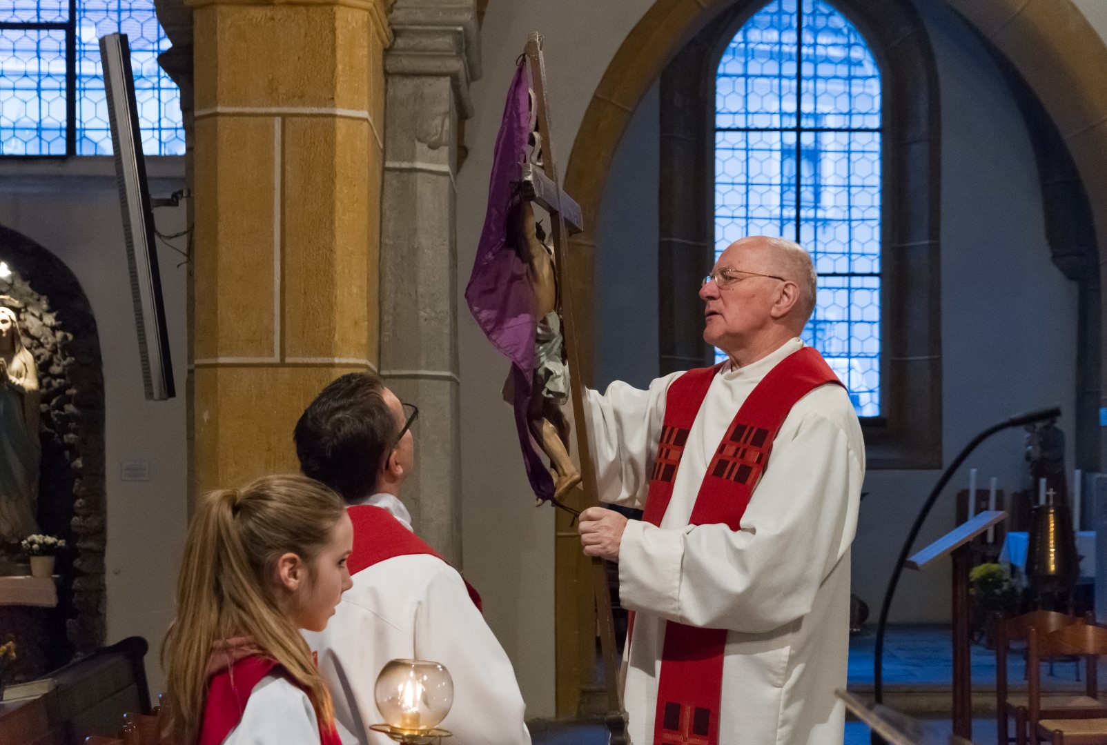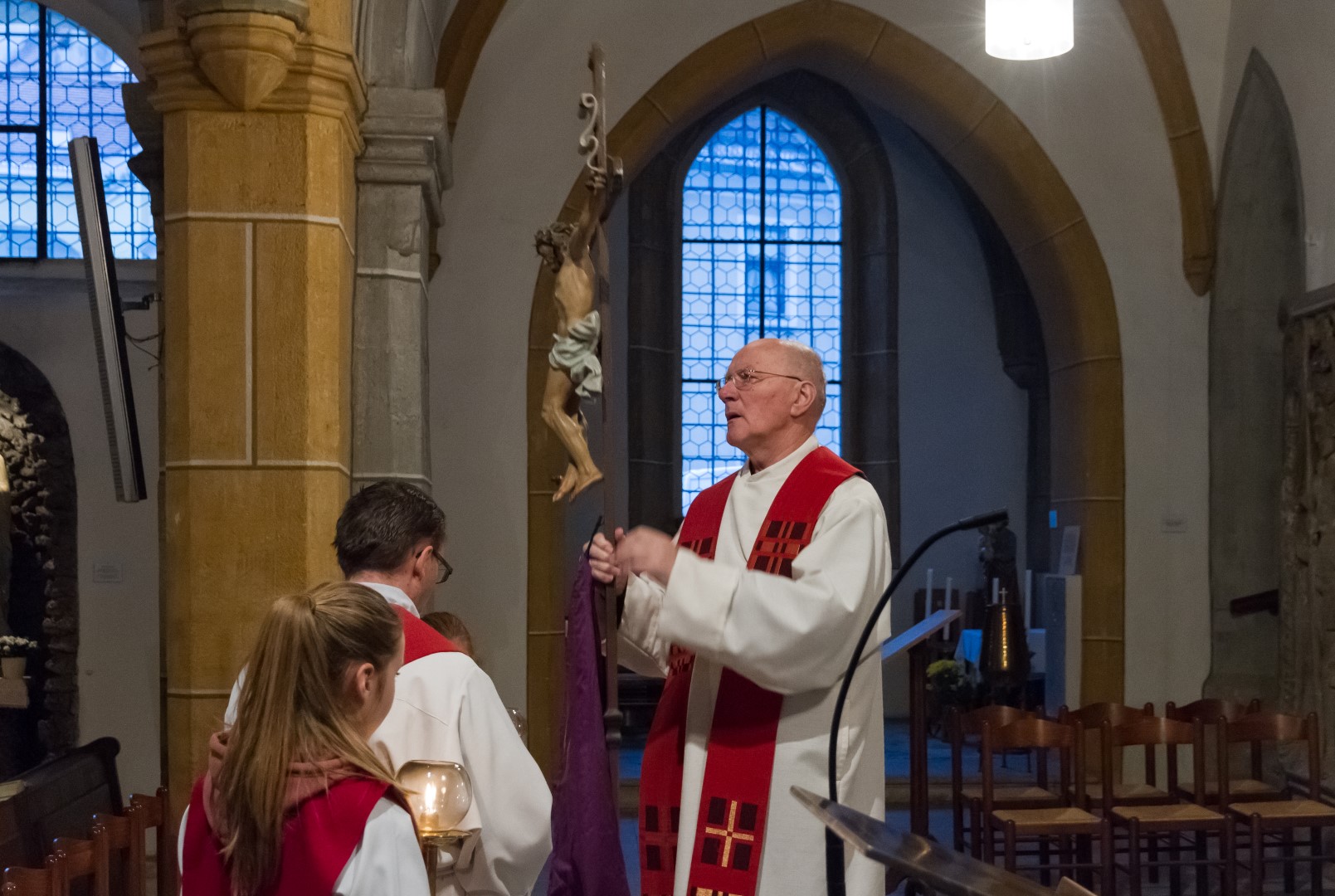 Die aus drei Teilen, Wortgottesdienst, Kreuzverehrung und Kommunionfeier, bestehende Karfreitagsliturgie begann am Abend des 18. April um 19.00 Uhr und wurde von Dechant Mag. Engelbert Hofer und Kaplan Mag. Marek Ogrodowicz zusammen mit der Gemeinde gefeiert.