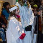 Den Kern der Kinderchristmette bildete wie stets ein von den MI-MA-Kindern (Ministranten und Markusspatzen) dargebrachtes Krippenspiel, das Geschehen in Bethlehem in kindlich-schöner Weise zum Ausdruck bringend. Herr Prof. Mag. Josef Barth war persönlich anwesend um mit einer digitalen Spiegelreflexkamera und einem Beamer den Ablauf der Feier, speziell aber das Krippenspiel und das Streicher-Ensemble, für alle Anwesenden möglichst gut einsehbar auf eine Großbild-Leinwand zu übertragen.