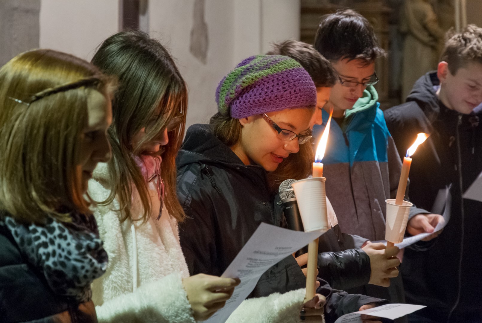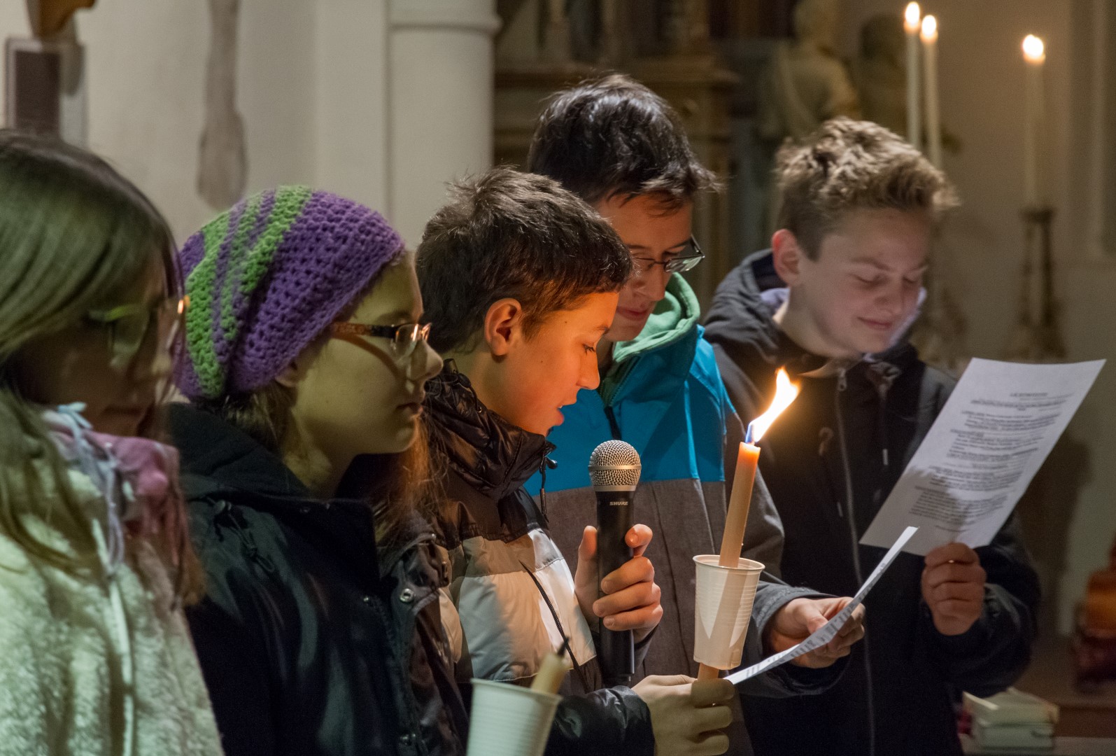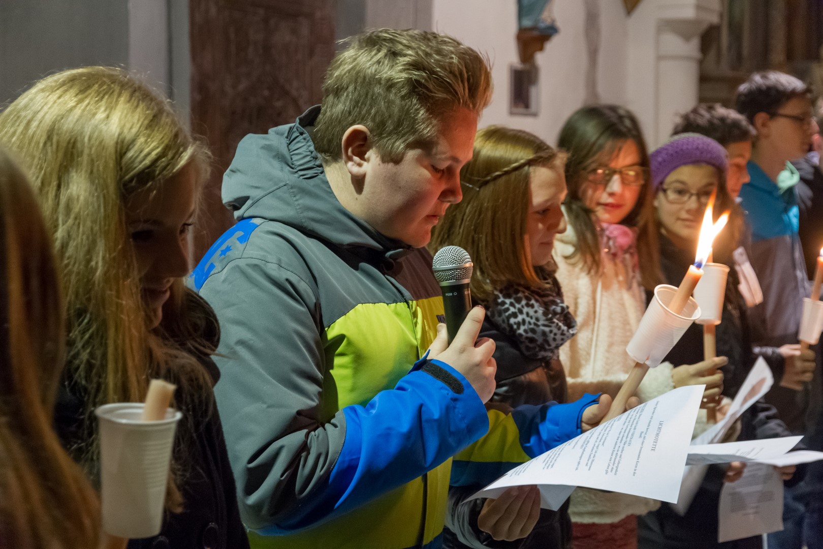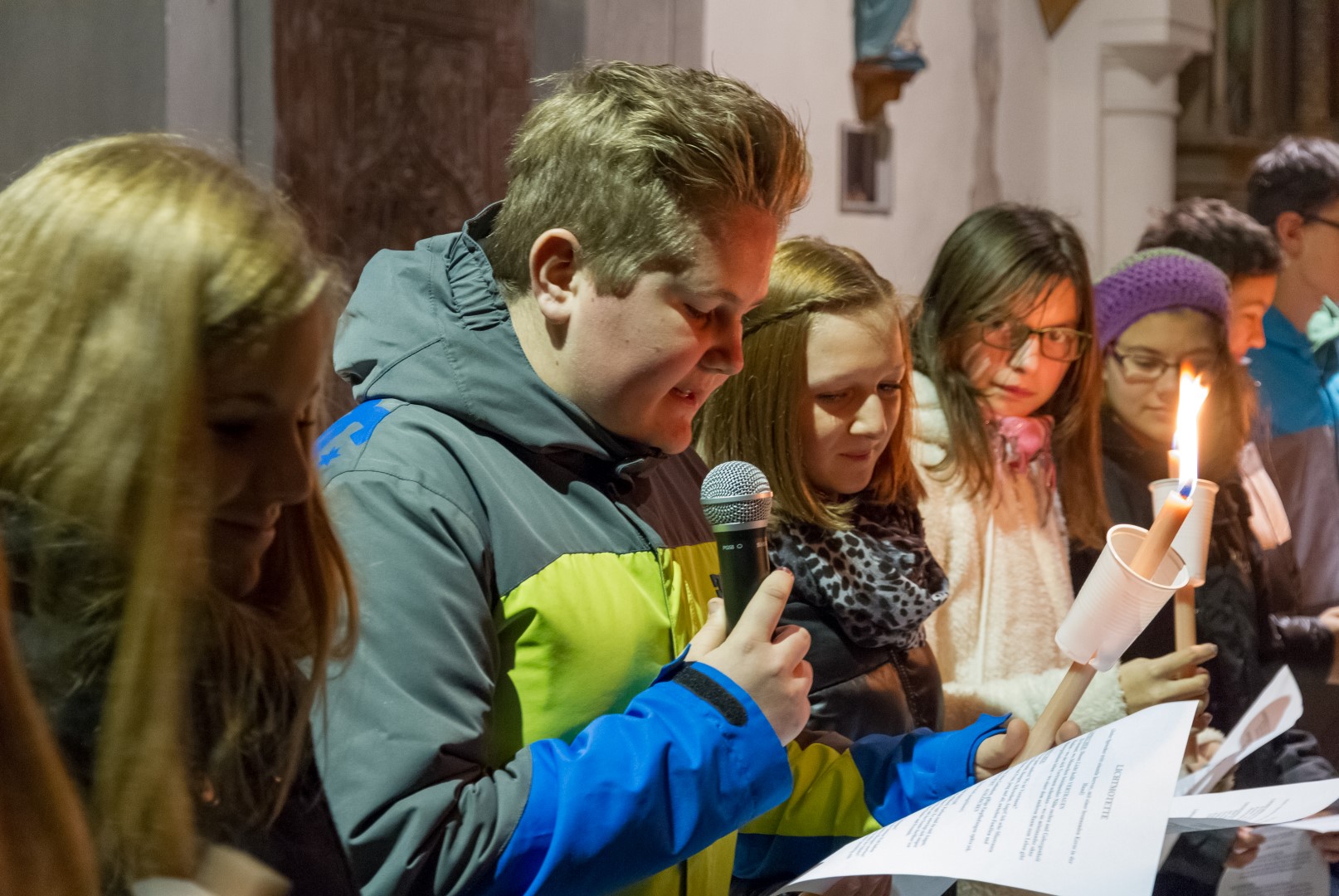 Anstelle der Lesung hört man diesmal von den Firmlingen vorgetragene Texte mit Kerzensymbolik, passend zum Fest … (© Herr Mag. Bernhard Wagner)