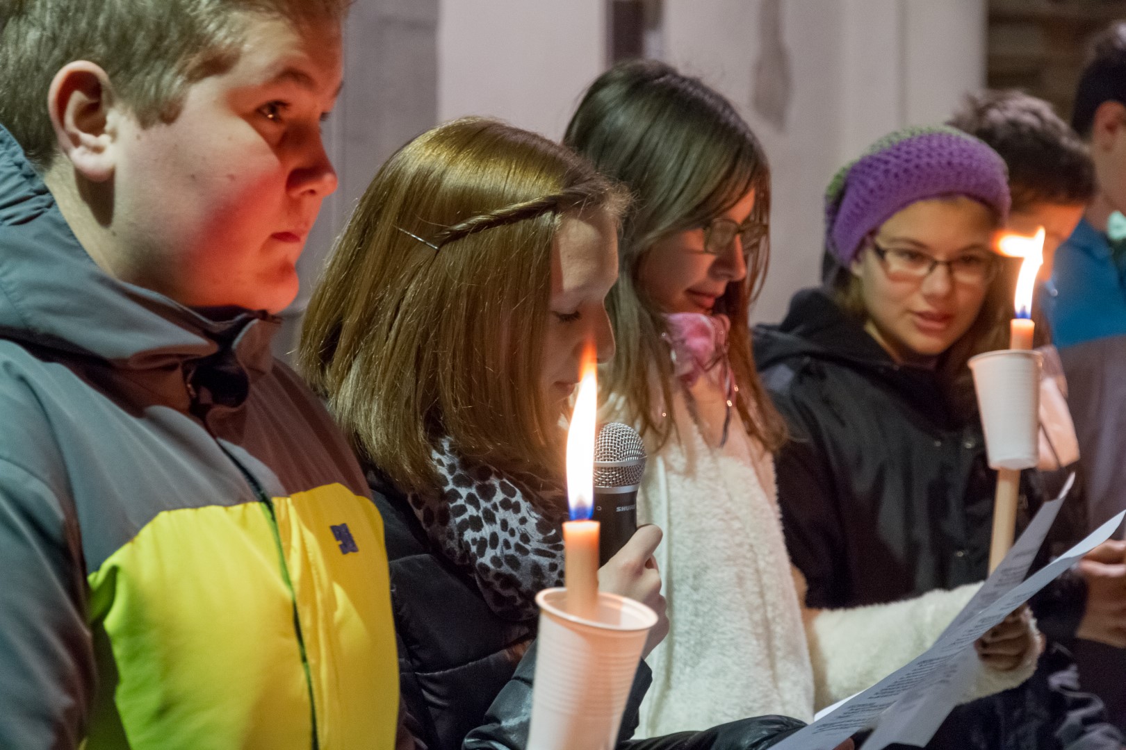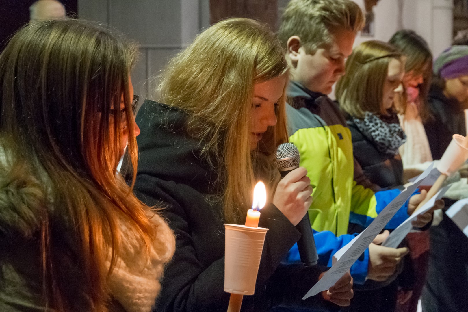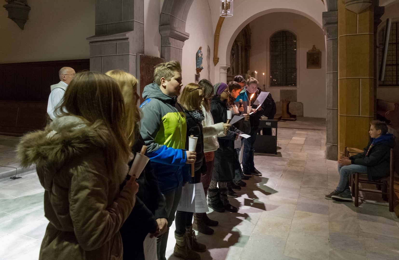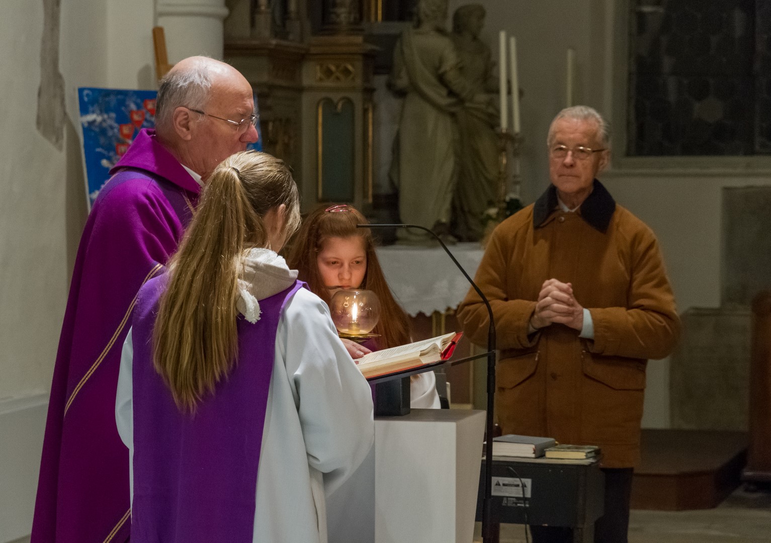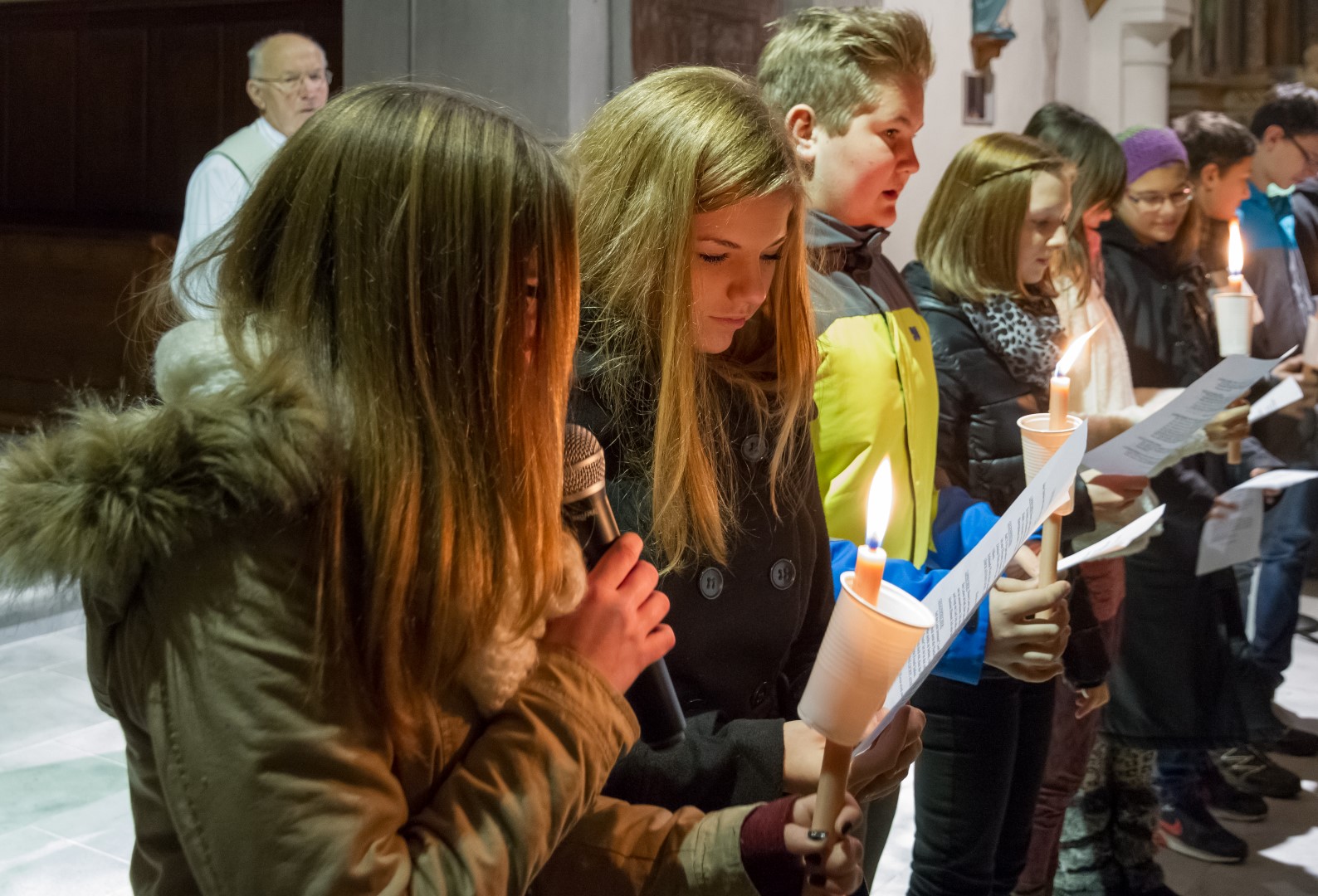 Anstelle der Lesung hört man diesmal von den Firmlingen vorgetragene Texte mit Kerzensymbolik, passend zum Fest … (© Herr Mag. Bernhard Wagner)