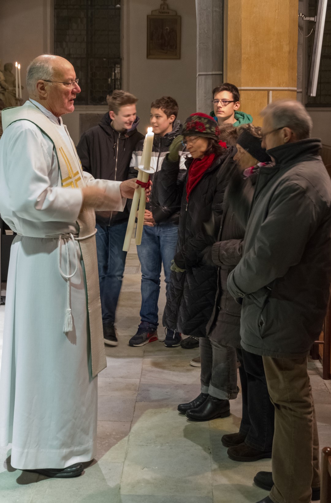 Dechant Hofer spricht das Segensgebet über die Kerzen … (© Herr Mag. Bernhard Wagner)