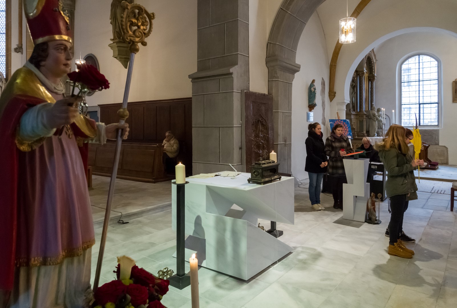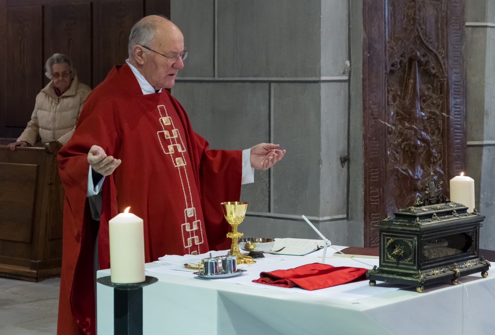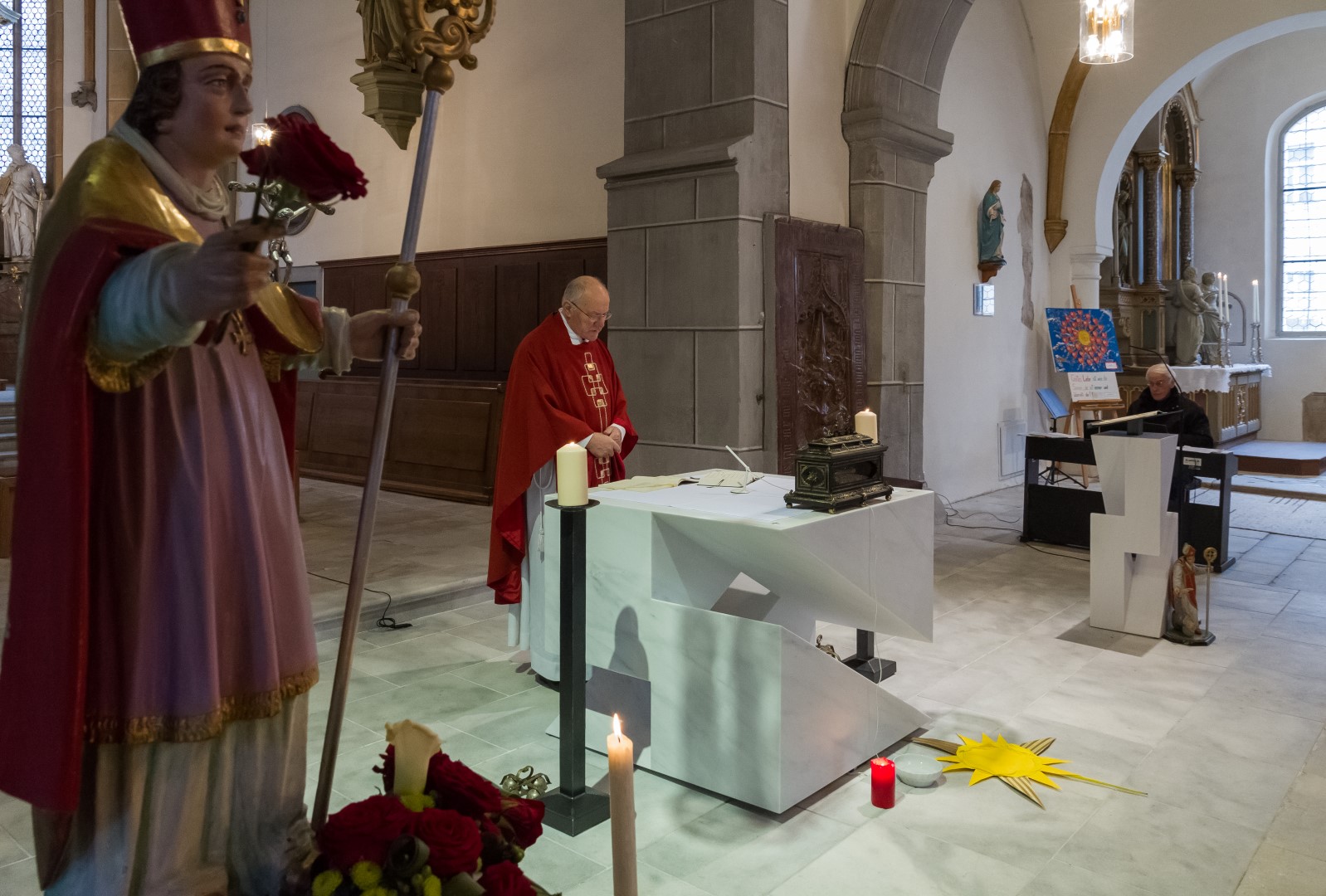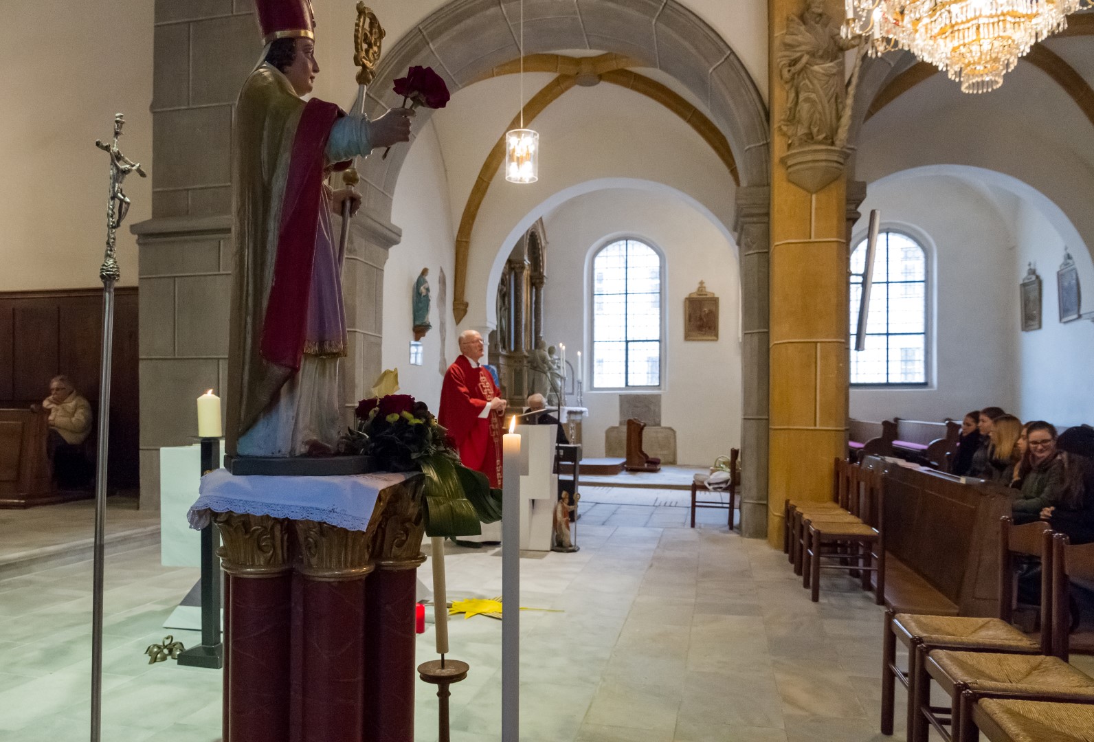 Am Schluss des Gottesdienstes wird der beliebte Blasiussegen gespendet … (© Herr Mag. Bernhard Wagner)