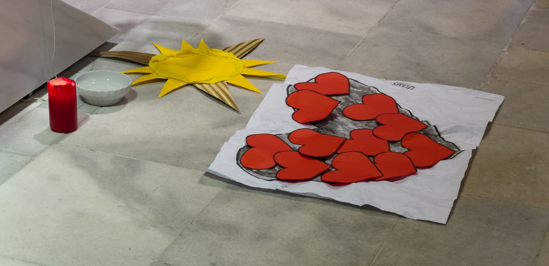 Herzplakat und erwähnte Symbolgegenstände (© Herr Mag. Bernhard Wagner).
