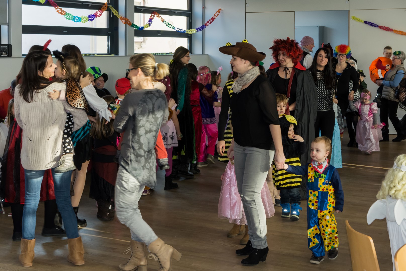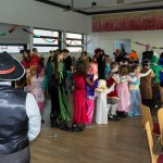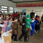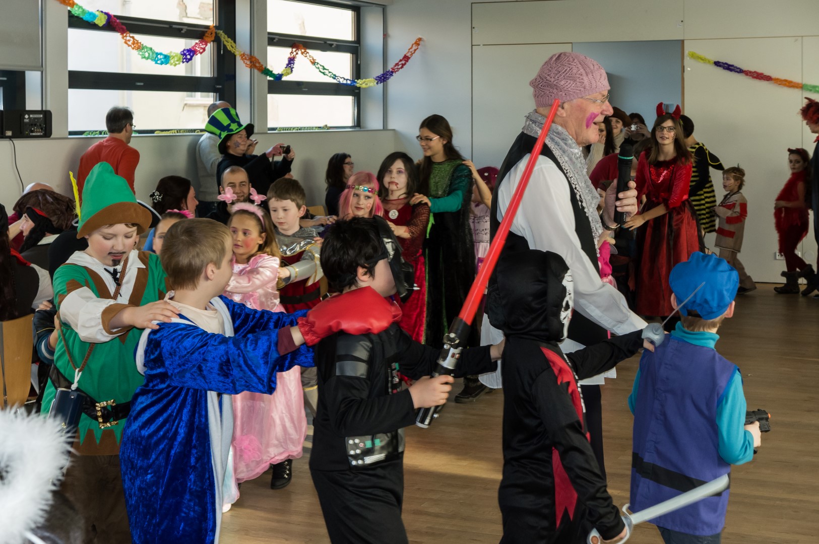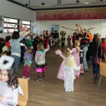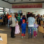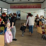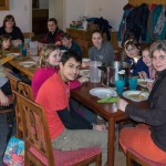 Die Ministranten und Markusspatzen verspeisen gemeinsam mit Frau Claudia Cufer (hinten links) sowie den Religionslehrerinnen Frau Heike Pöcheim (hinten rechts) und Frau Martha Radl eine Fastensuppe die sie zuvor zubereitet hatten (© Herr Mag. Bernhard Wagner).