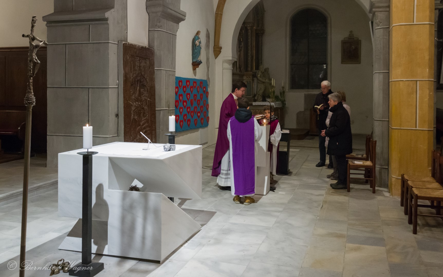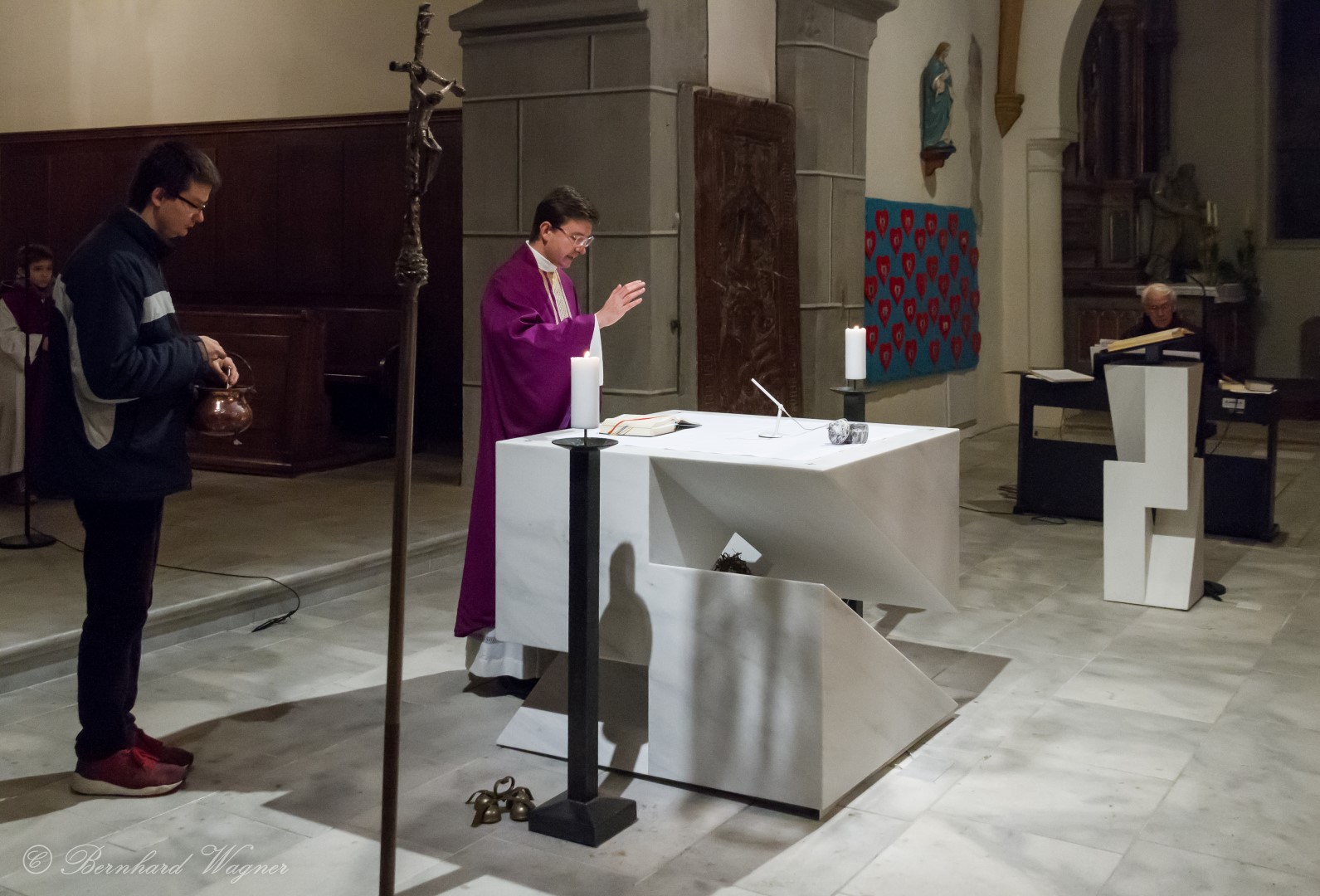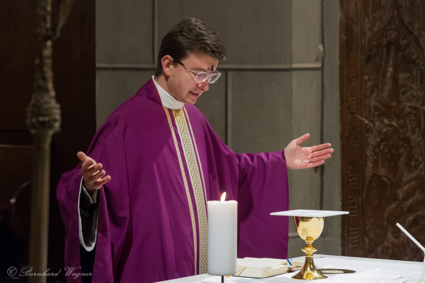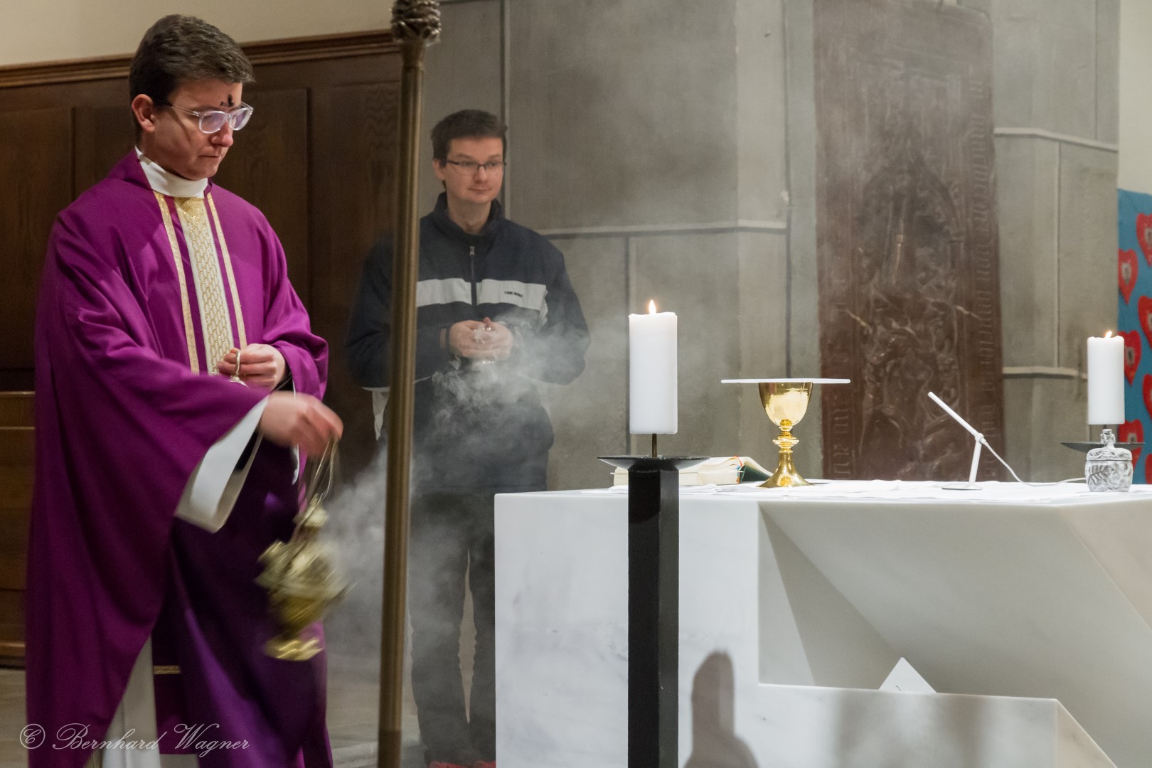 Beginnend um 19.00 Uhr feierte Kaplan Mag. Dr. Christoph Kranicki mit den Anwesenden in der Markuskirche den Aschermittwochsgottesdienst in welchem im Anschluss an die Predigt die Asche gesegnet, mit etwas Weihwasser besprengt und sodann das Aschenkreuz mit den Worten „Bekehrt euch und glaubt an das Evangelium“ ausgeteilt wurde. Dieser Ritus soll im Besonderen an die Vergänglichkeit des Menschen erinnern.