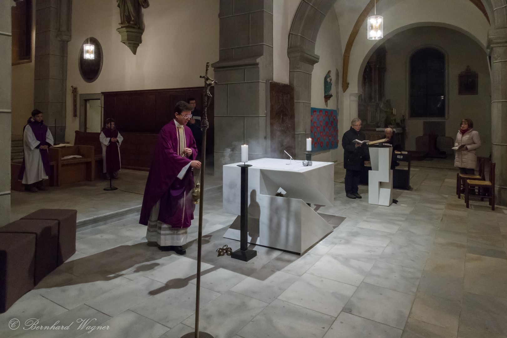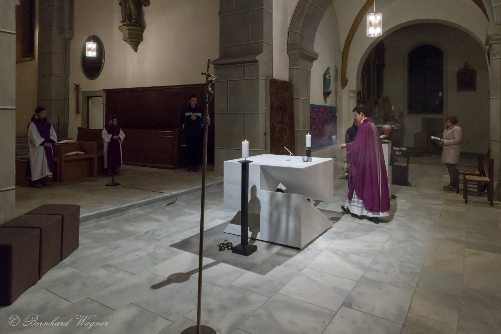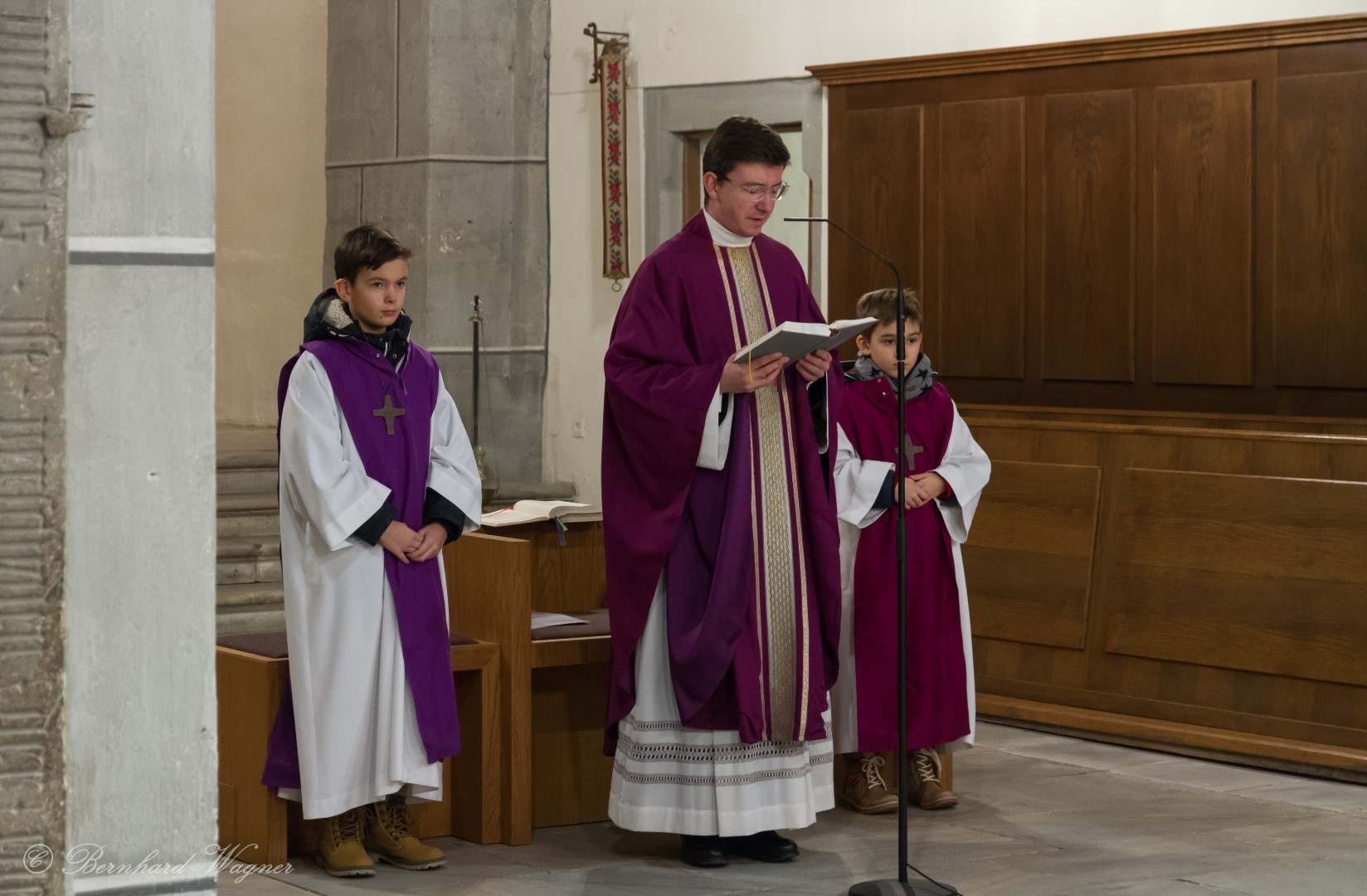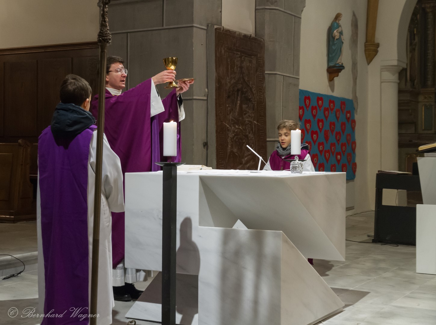 Beginnend um 19.00 Uhr feierte Kaplan Mag. Dr. Christoph Kranicki mit den Anwesenden in der Markuskirche den Aschermittwochsgottesdienst in welchem im Anschluss an die Predigt die Asche gesegnet, mit etwas Weihwasser besprengt und sodann das Aschenkreuz mit den Worten „Bekehrt euch und glaubt an das Evangelium“ ausgeteilt wurde. Dieser Ritus soll im Besonderen an die Vergänglichkeit des Menschen erinnern.