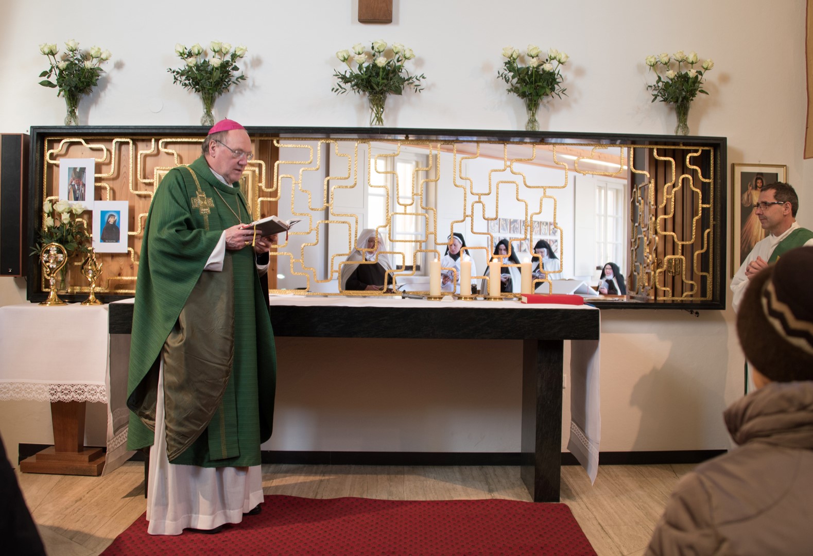 Am Sonntag, den 29. Jänner, wurden im Karmel Himmelau durch Diözesanbischof Dr. Alois Schwarz feierlich die Reliquien der Hl. Schwester Faustyna und des Hl. Johannes Paul II. eingeführt. In der Predigt, die als Echo der Seligpreisungen erklungen ist, hat der Diözesanbischof darauf hingewiesen, was „ein reines, barmherziges Herz“ zu bedeuten hat und wie es im Leben den zwei Heiligen gelungen ist. Anwesend waren zahlreich gekommene Gläubige, Bischofsvikar Antonio Sagardoy, Pfarrer in Ruhe Eduard Hohenwarter, Kaplan Christoph Kranicki und Diakon Andreas Schönhart.