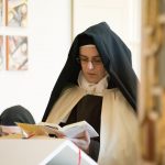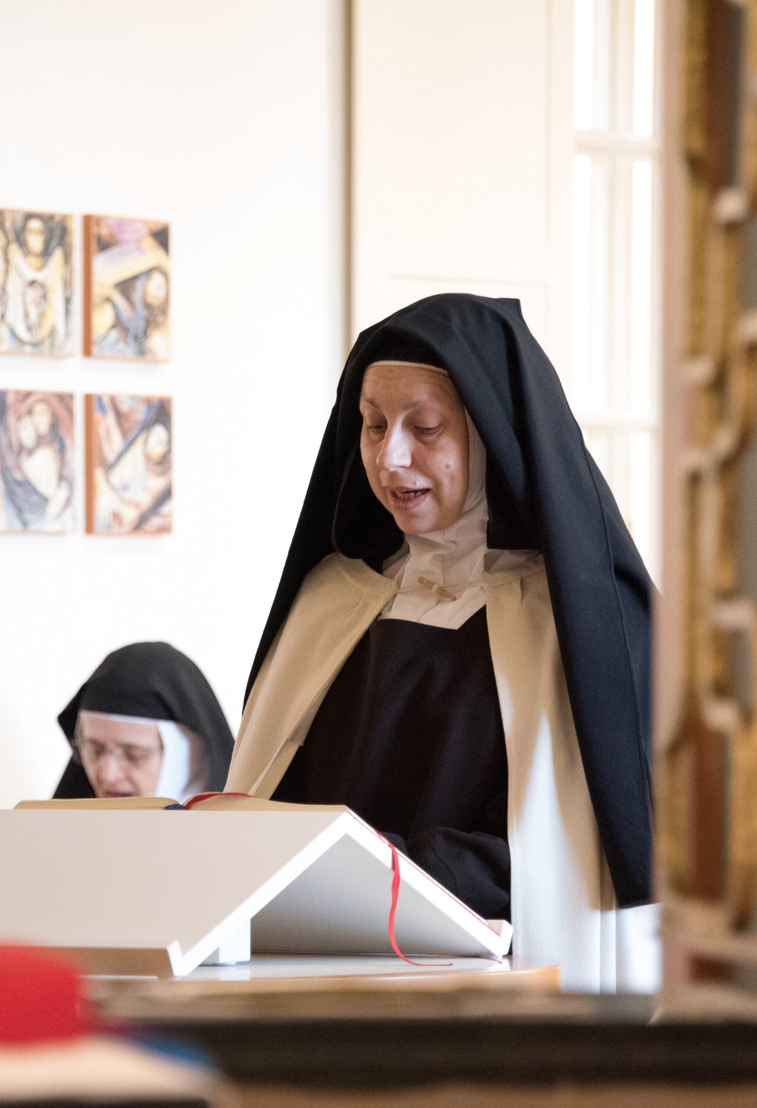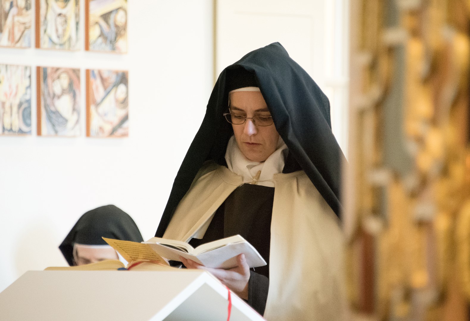 Eine Schwester des Karmels liest einen Text.