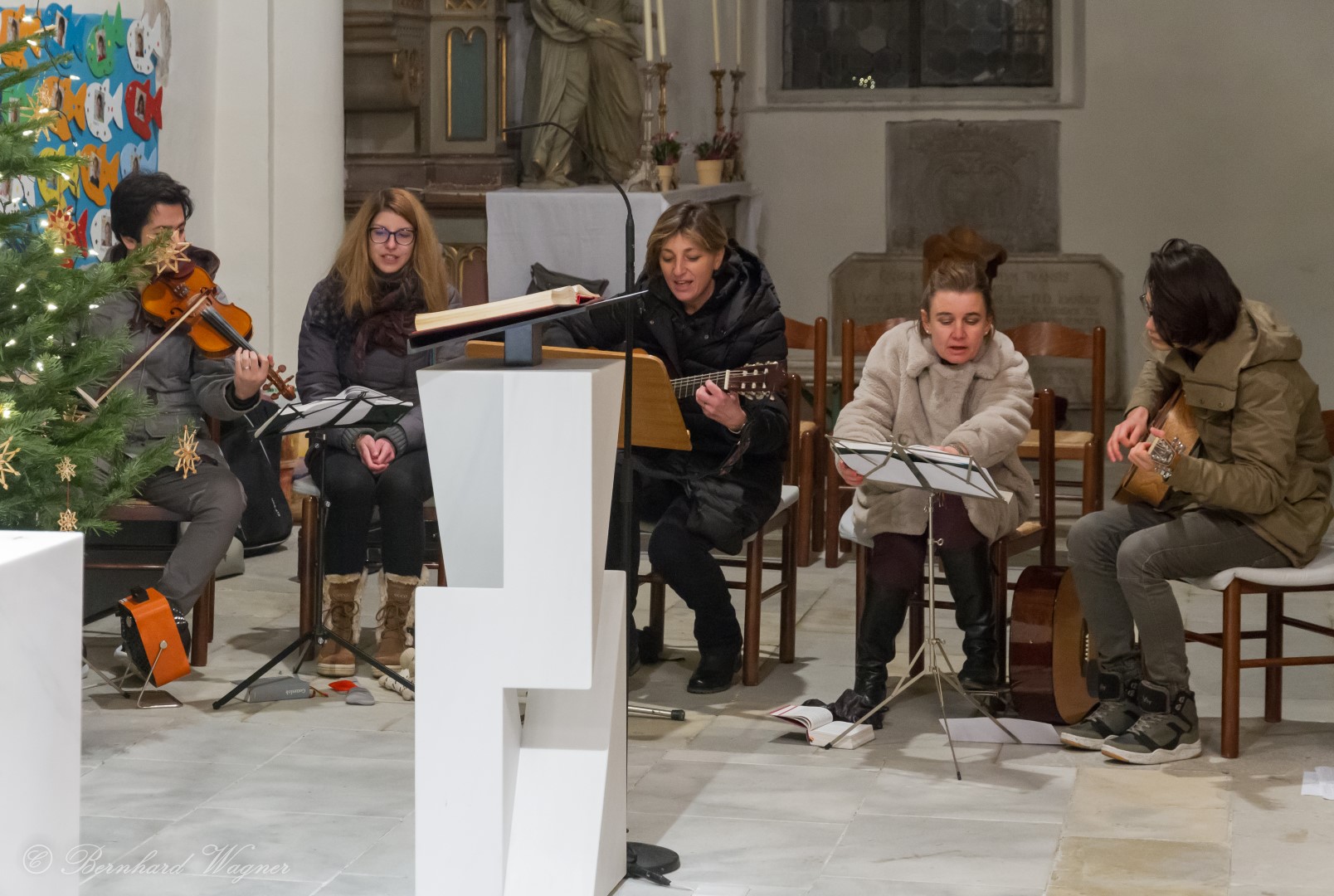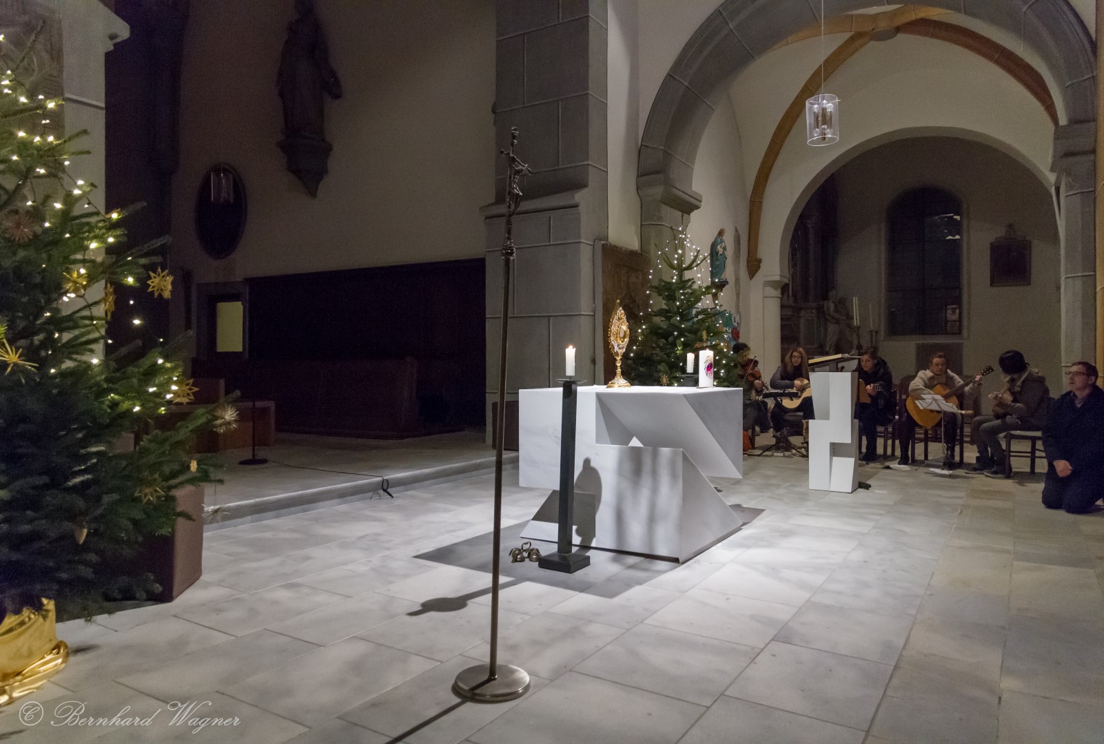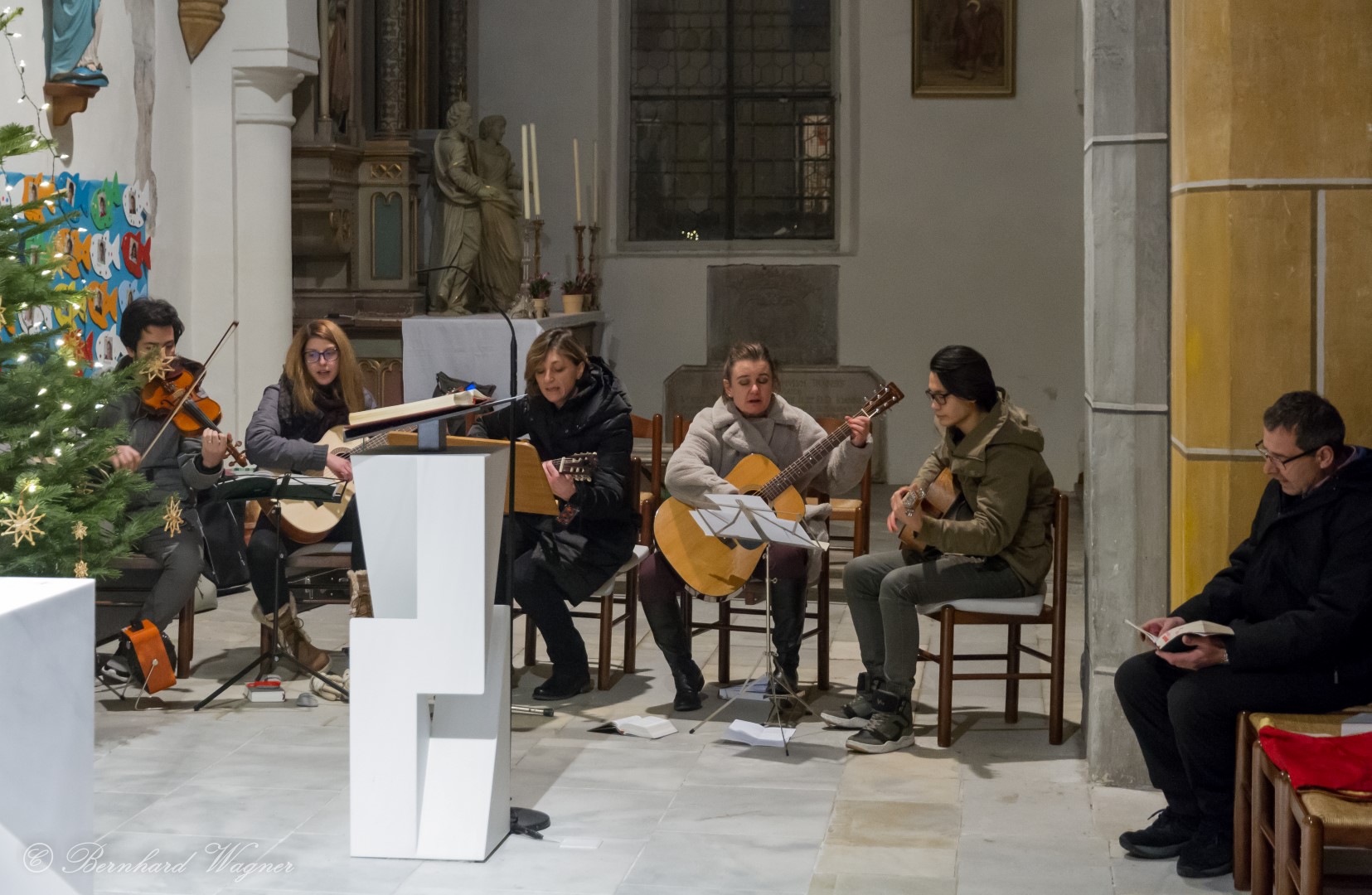 Blick in den Gebetsraum zu den Schwestern, die Feier wird auch mit Gitarrenklängen musikalisch umrahmt.
