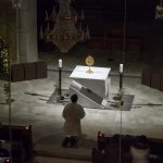 Anschließend erfolgte die Aussetzung der Monstranz mit dem Leib Christi am Volksaltar durch Diakon Schönhart der in der nächsten Stunde mit den Gläubigen die Anbetung hielt, musikalisch gestaltet von einer Sing- und Spielgruppe während der Kaplan im Beichtstuhl den Gläubigen Aussprache und Beichte ermöglichte.