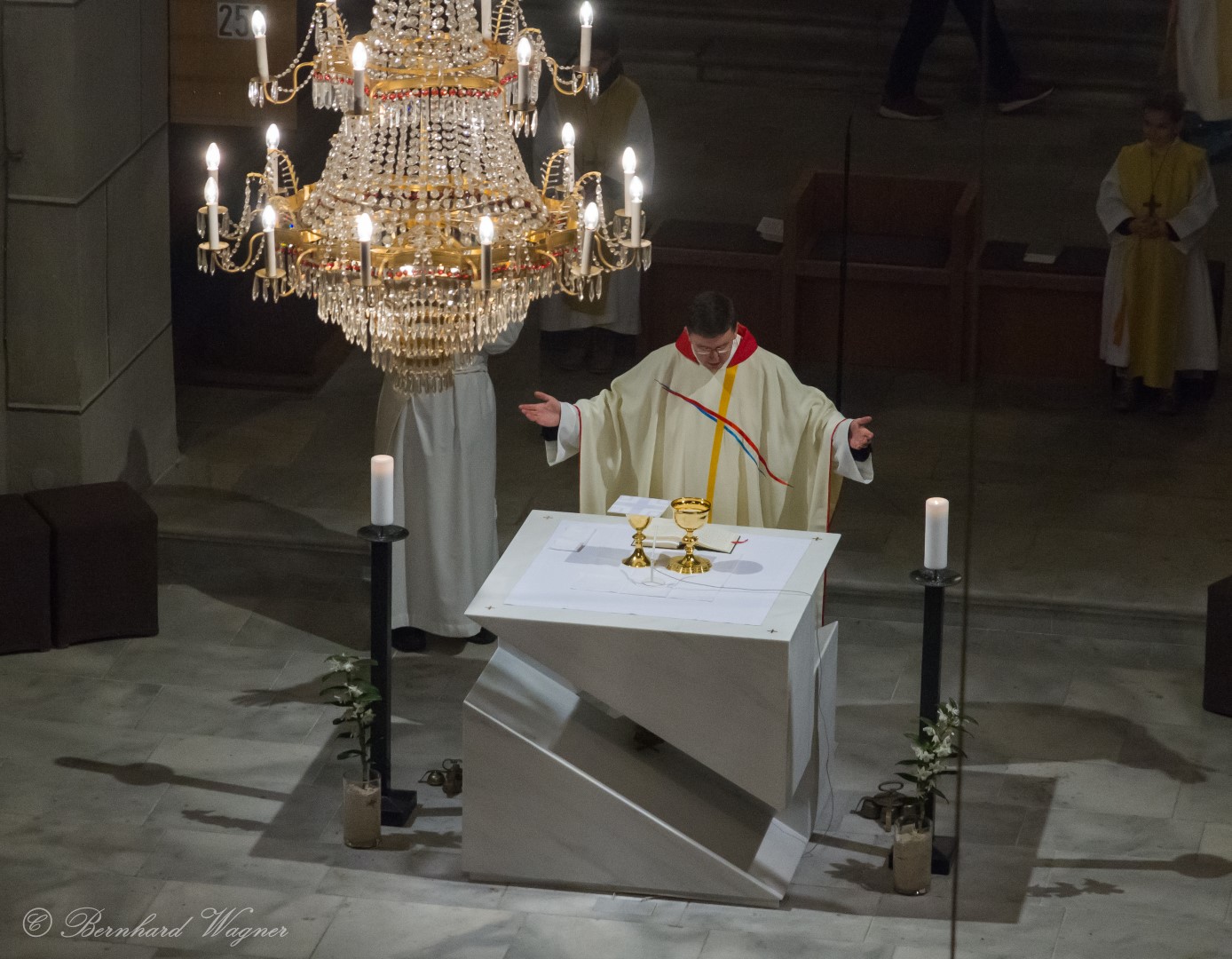 Um 19.00 Uhr begann schließlich der Abendgottesdienst zelebriert von Kaplan Kranicki gemeinsam mit Diakon Schönhart, den Volksgesang während der Messe begleitete Herr Christian Theuermann MA Bakk.art. an der Orgel.