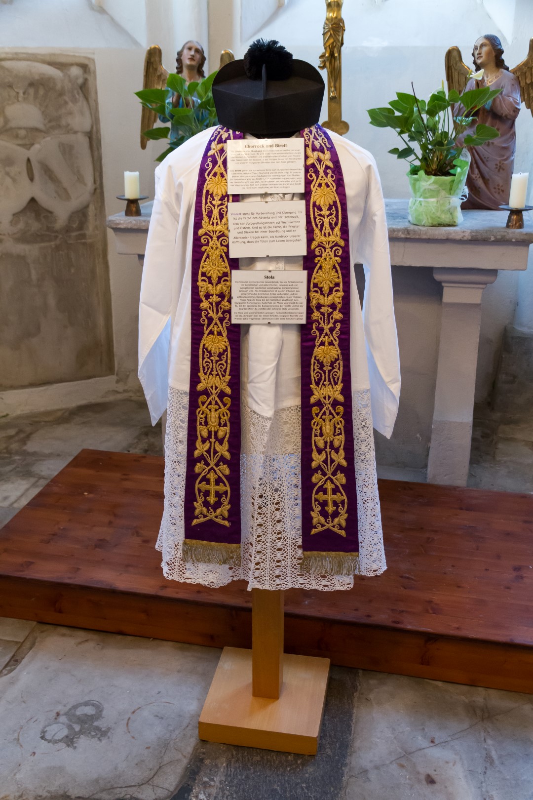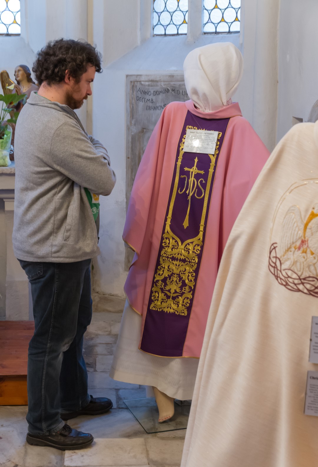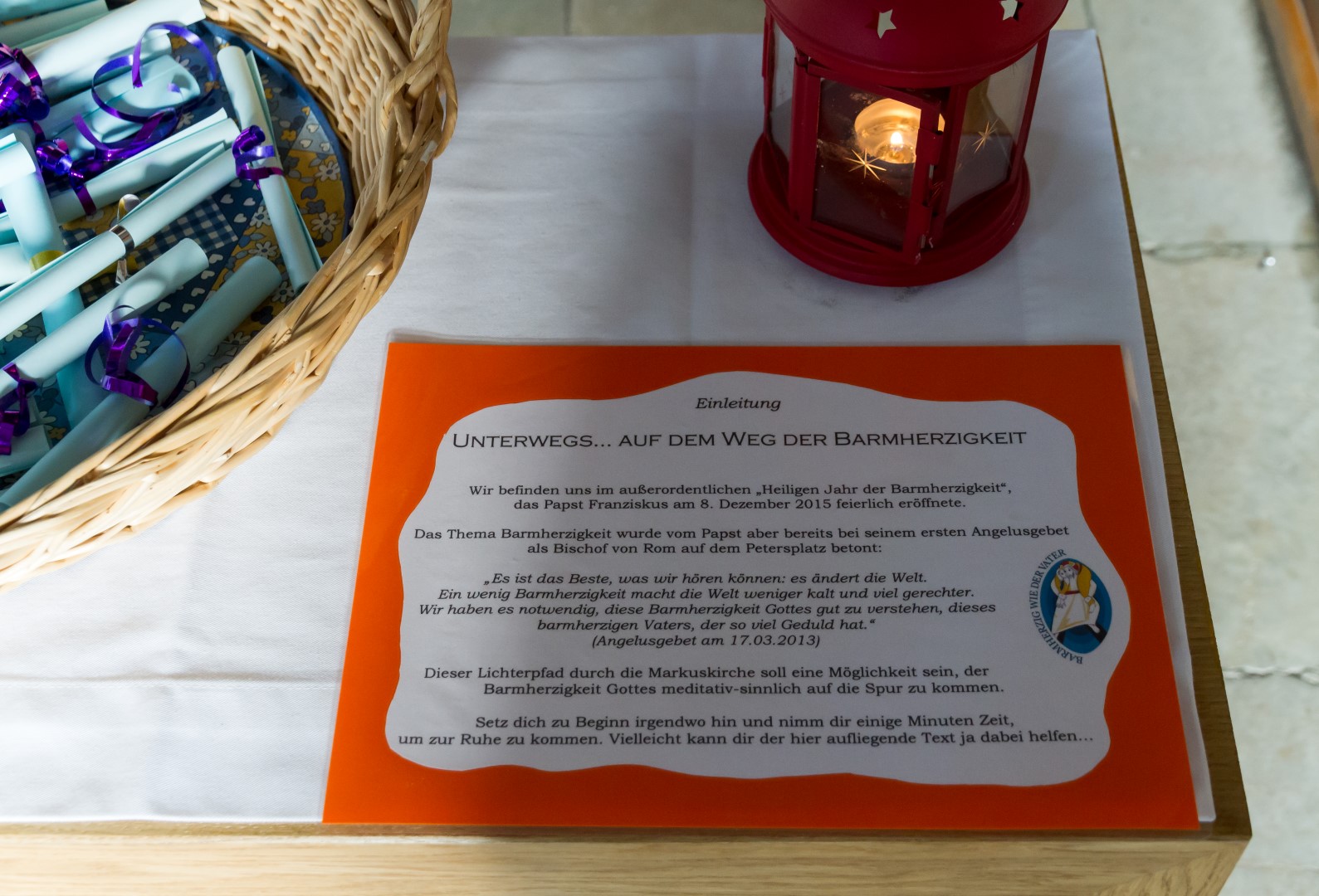 4. Unterwegs … durch das Kirchenjahr: In der Turmkapelle der Markuskirche war man eingeladen sich in einer kleinen Ausstellung mit liturgischen Kleidungsstücken, vorbereitet und auf Schildern ausführlich erläutert von Kaplan Kranicki und Regionaljugendleiter Herrn Mokoru ebenfalls von 19.30 Uhr bis 21 Uhr auf eine Reise durch das Kirchenjahr zu begeben.