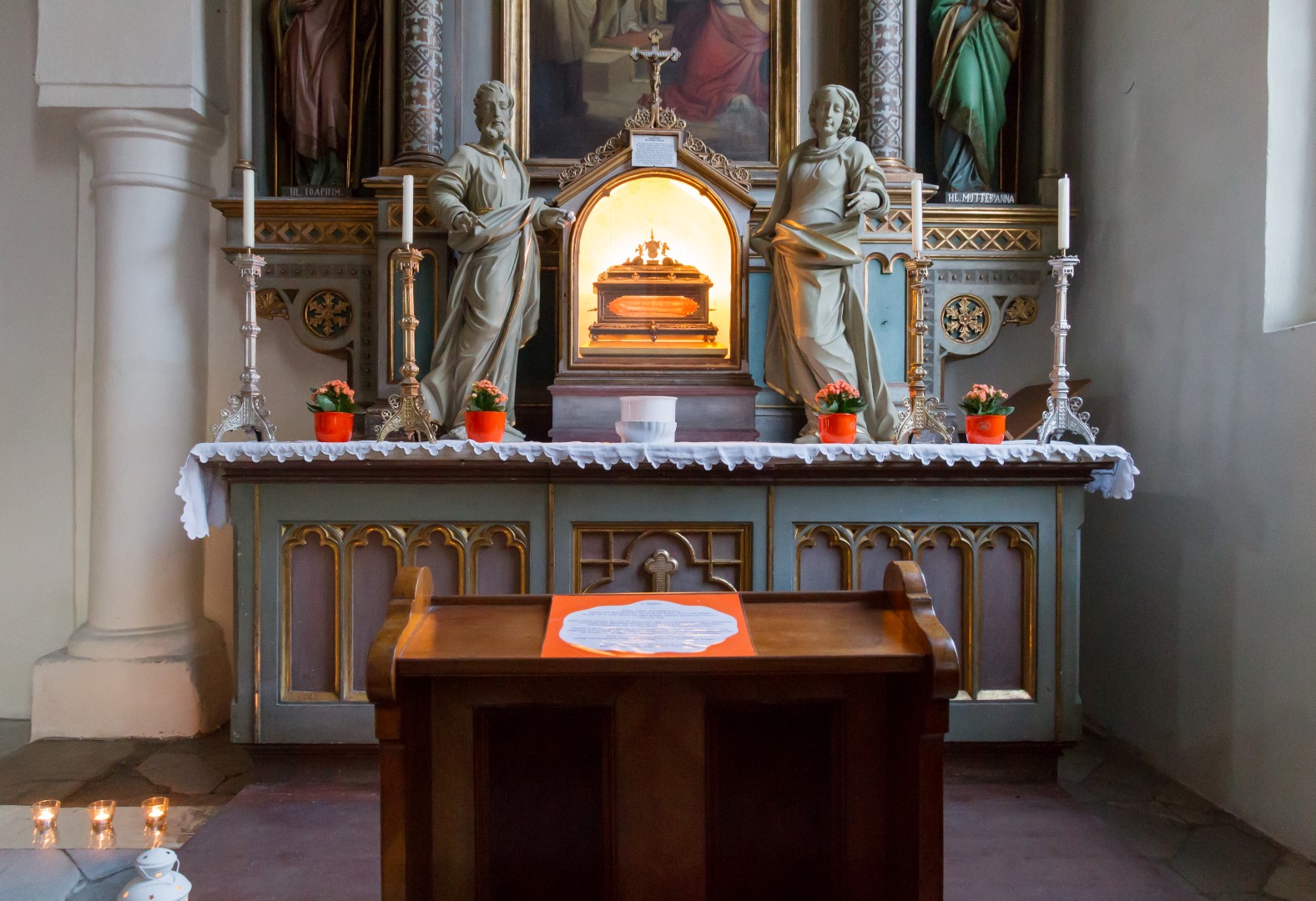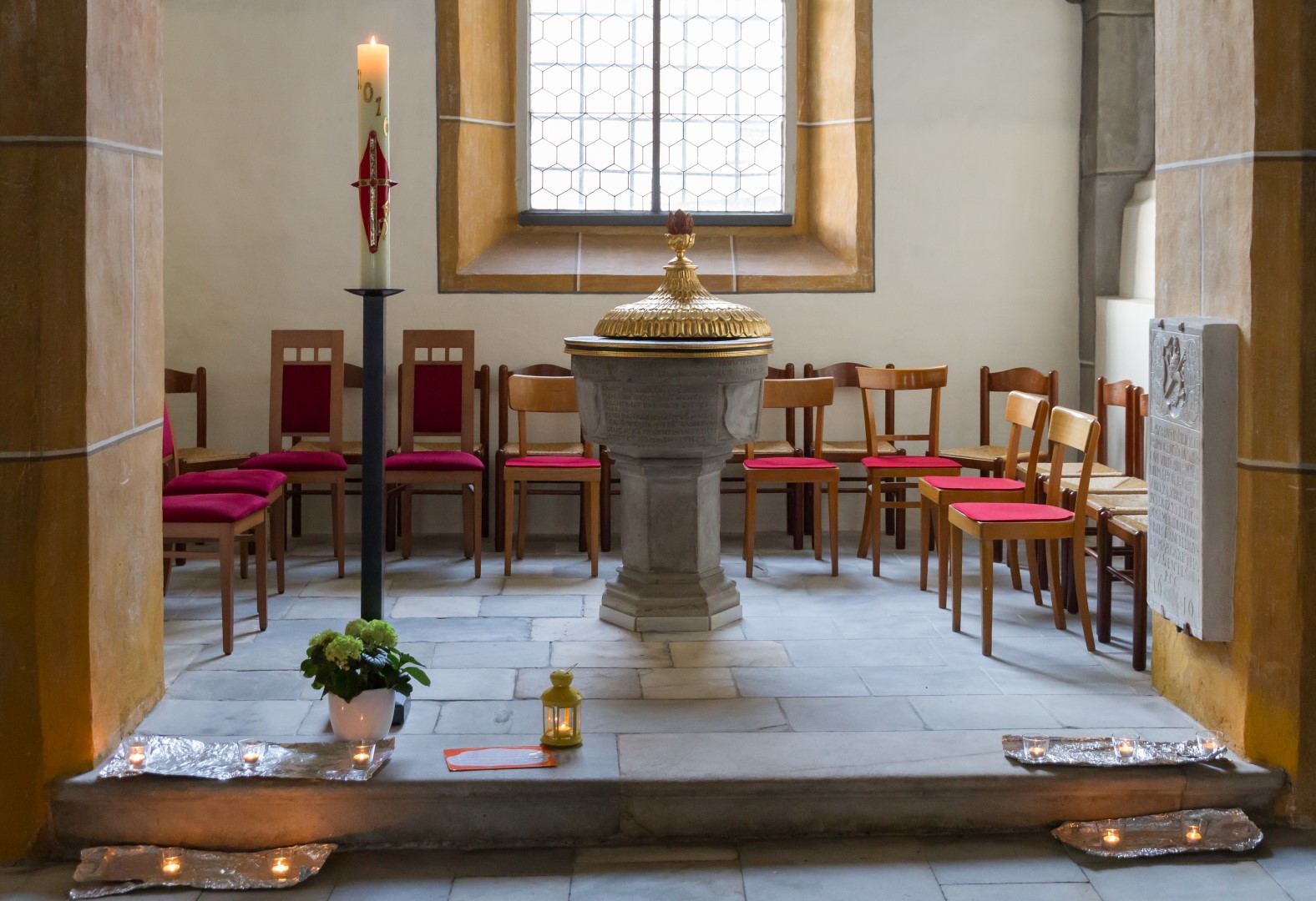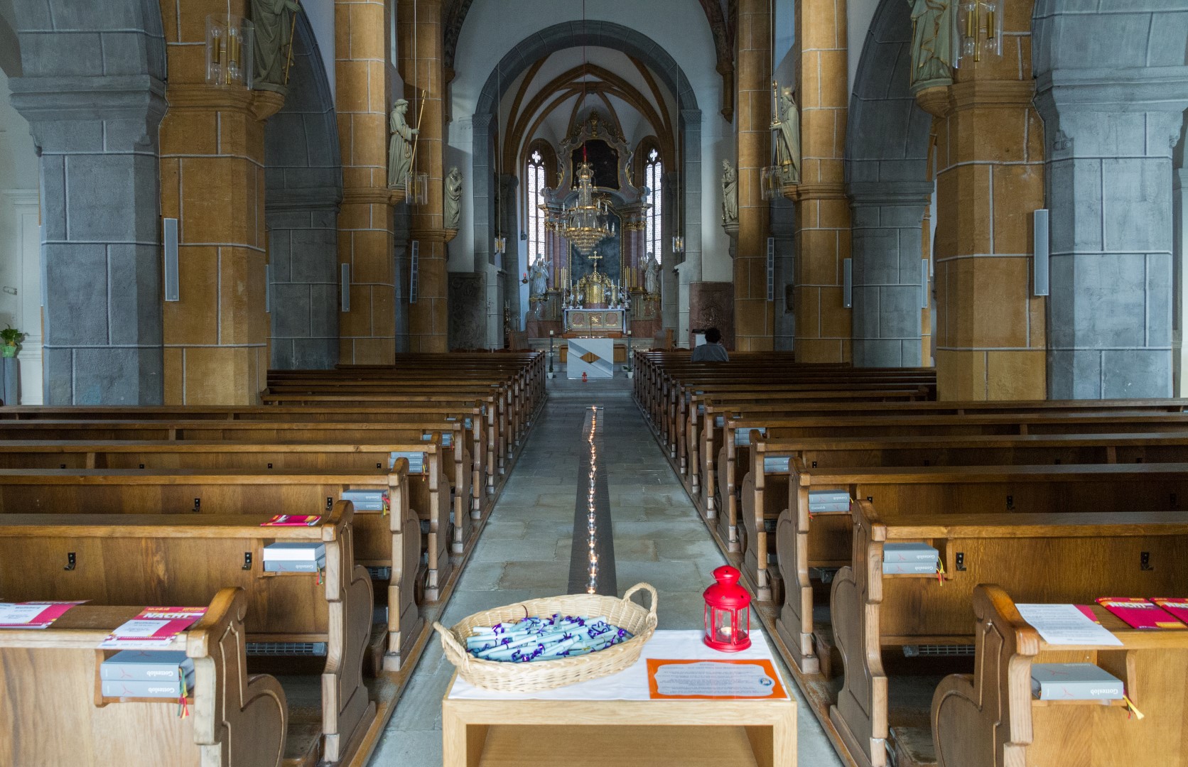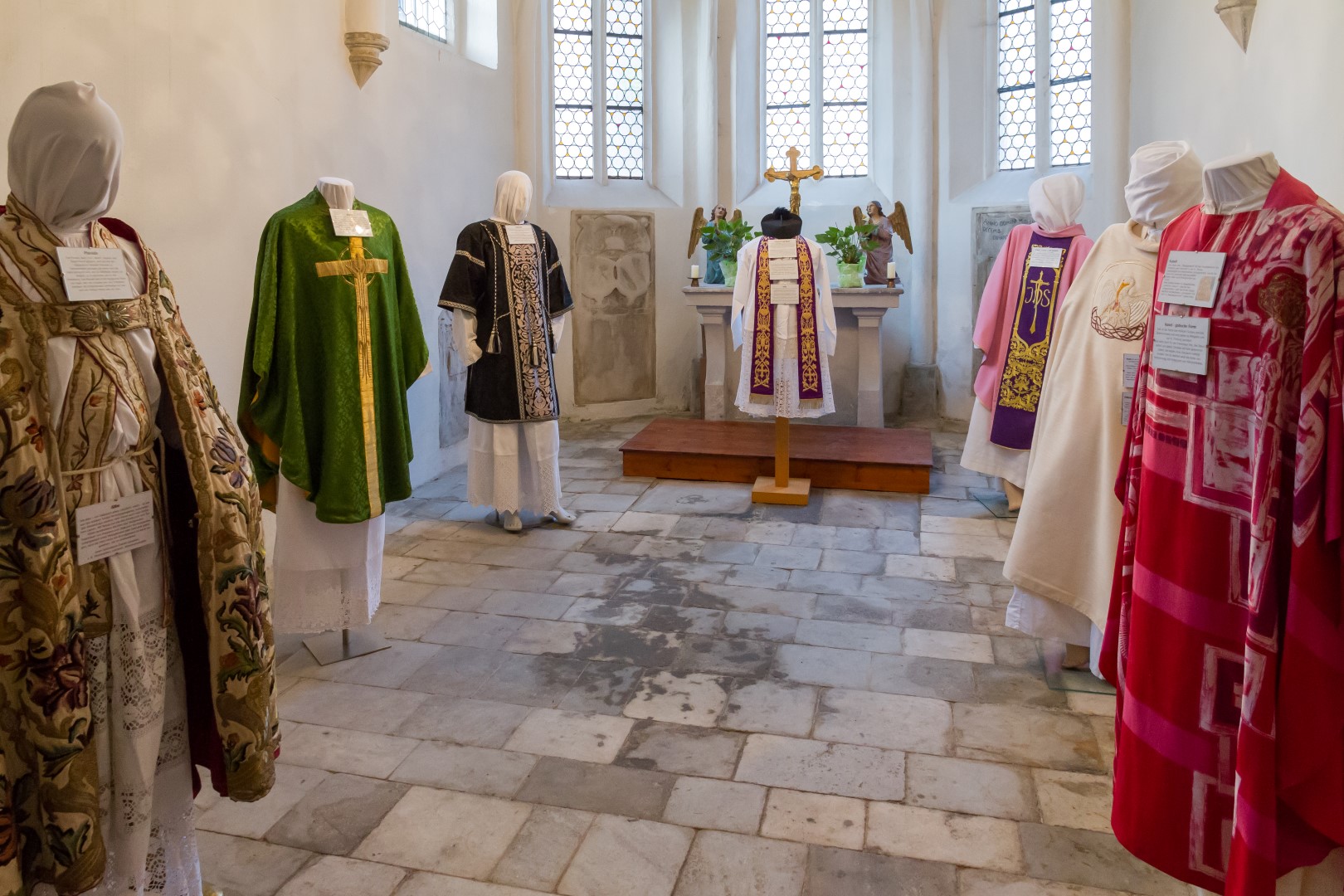 4. Unterwegs … durch das Kirchenjahr: In der Turmkapelle der Markuskirche war man eingeladen sich in einer kleinen Ausstellung mit liturgischen Kleidungsstücken, vorbereitet und auf Schildern ausführlich erläutert von Kaplan Kranicki und Regionaljugendleiter Herrn Mokoru ebenfalls von 19.30 Uhr bis 21 Uhr auf eine Reise durch das Kirchenjahr zu begeben.