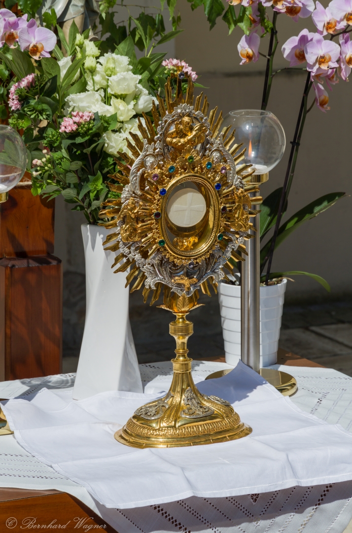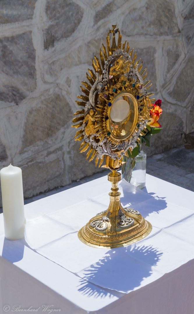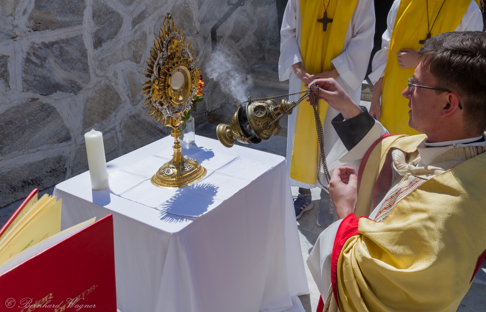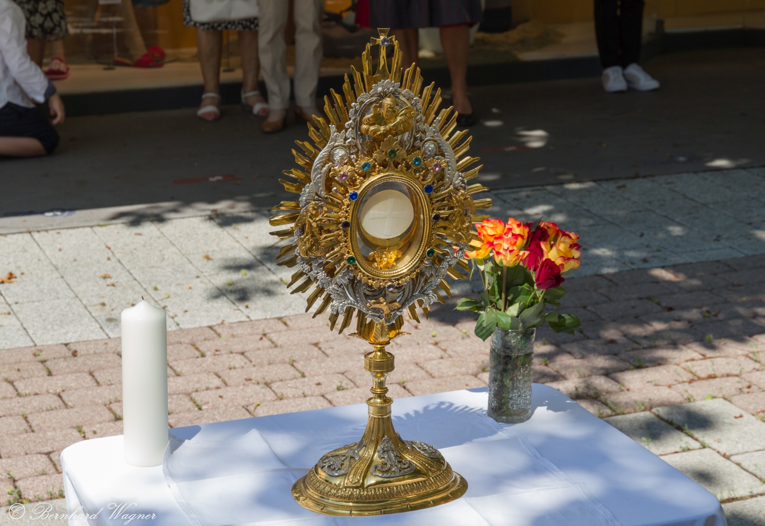Provisor Kranicki verkündete bei jedem der Altäre das hierfür bestimmte Evangelium, außerdem wurden Fürbitten gesprochen und mit dem Allerheiligsten der Eucharistische Segen erteilt. Zum Abschluss sang man am Schulplatz, begleitet von den Klängen der Stadtkapelle, das Te Deum, Großer Gott, wir loben dich.