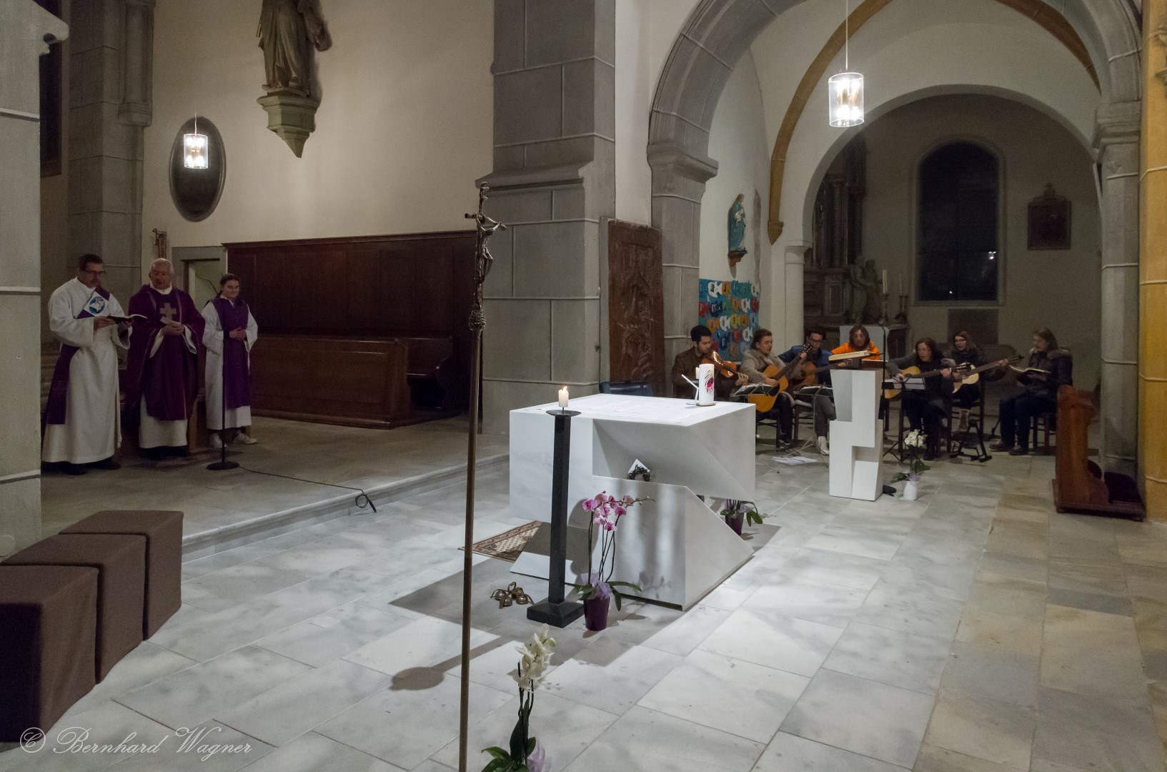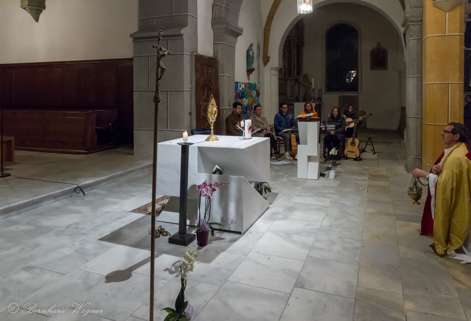 Eine halbe Stunde vor Beginn des Gottesdienstes, ab 18.30 Uhr, wurde der Kreuzweg gebetet und es gab die Möglichkeit zur Beichte. Die musikalische Gestaltung der Messfeier übernahmen im Verlauf der Woche verschiedene Chöre sowie eine Bläsergruppe am vorletzten Tag.