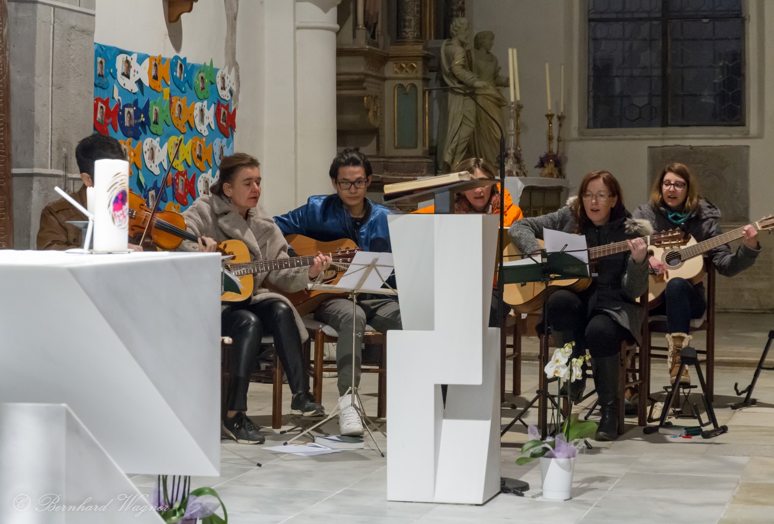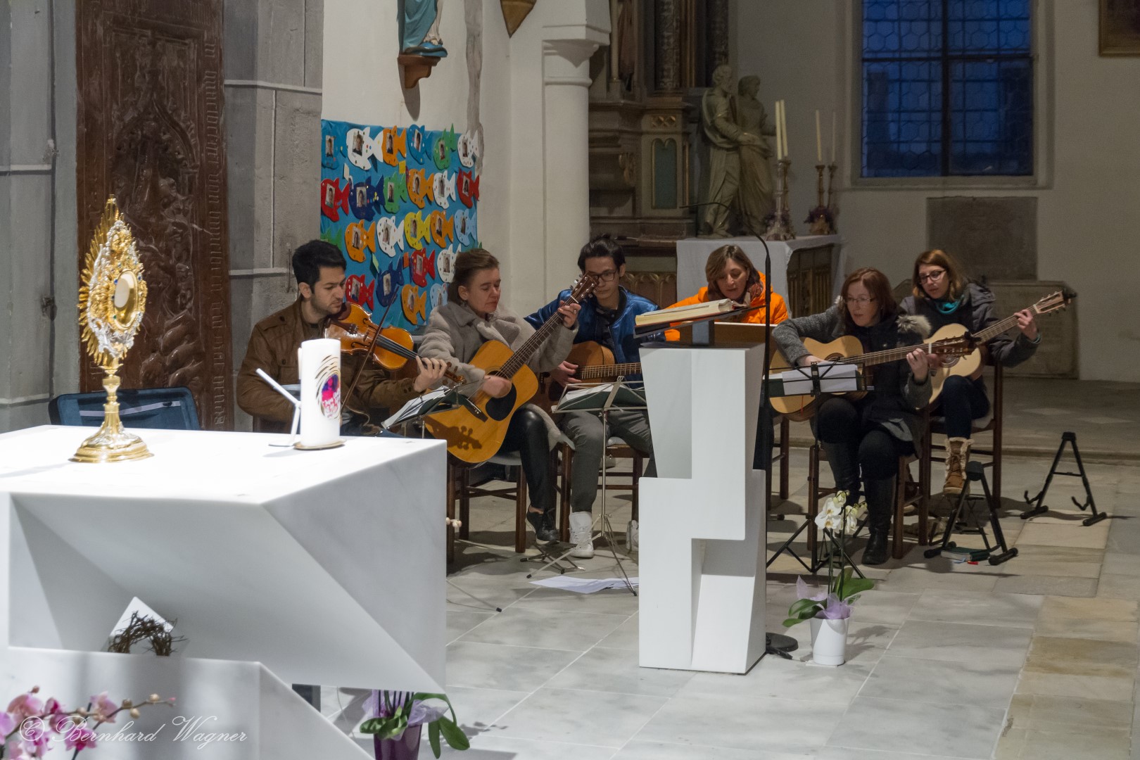 Den anschließenden Gottesdienst zelebrierte Bischofsvikar Pater Antonio Sagardoy OCD. In der eindrucksvollen, nachhaltigen Predigt erinnerte er die Gottesdienstteilnehmer: „Sich am Wort Gottes zu orientieren und das Leben danach auszurichten.“ Das Hören und Hinhören auf das Wort Gottes führt dazu – Gott zu gehören. Höre ich auf das Wort Gottes? Will ich Gott gehören? Mit Lobpreisliedern bei der eucharistischen Anbetung und musikalischer Mitgestaltung des Gottesdienstes durch eine Musikgruppe unter der Leitung von Eva-Maria Kölbl Perner, erlebte man Begeisterung und Gottes Nähe. Dazu gab es auch das Angebot der Aussprache und Beichte.