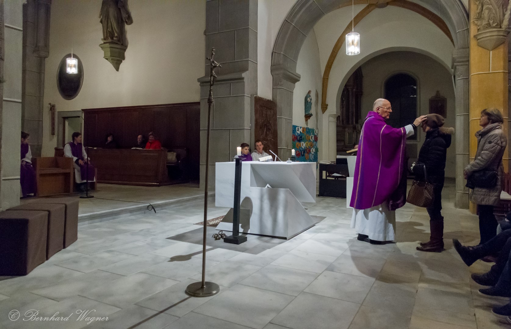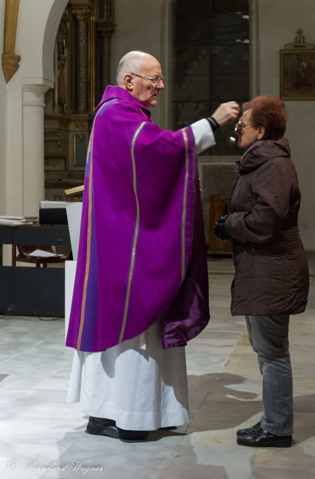 Dechant Mag. Engelbert Hofer feierte mit den Gläubigen in der Markuskirche mit Beginn um 19.00 Uhr den Aschermittwochsgottesdienst in welchem vor Beginn des Wortgottesdienstes die Asche gesegnet und das Aschenkreuz mit den Worten „Bekehrt euch und glaubt an das Evangelium“ ausgeteilt wurde welches an die Vergänglichkeit des Menschen erinnert.