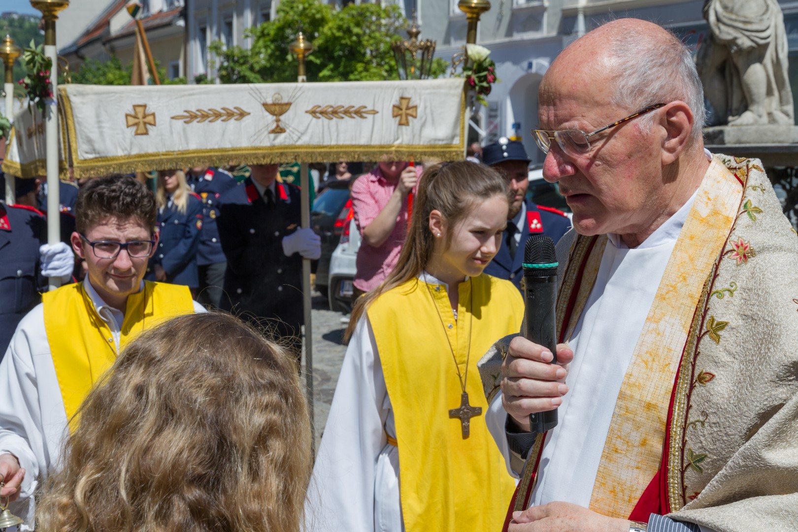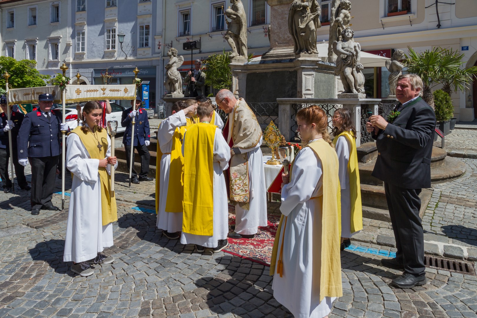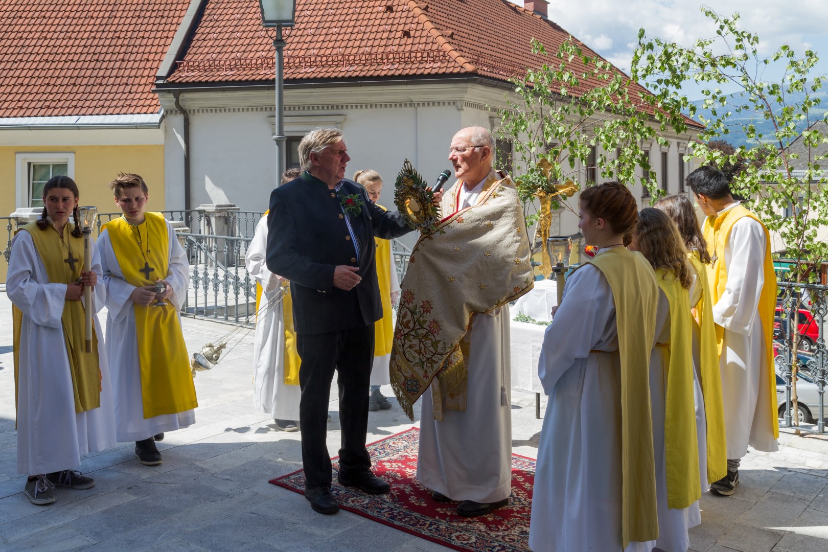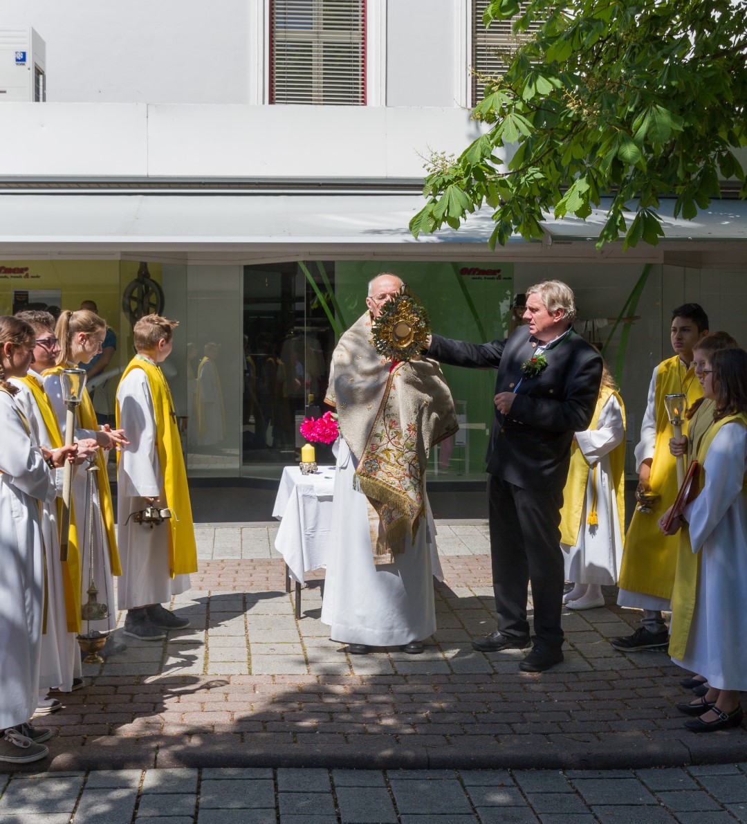Am Donnerstag, den 26. Mai mit Beginn um 9.30 Uhr zelebrierte Dechant Mag. Engelbert Hofer in der Stadtpfarrkirche St. Markus zusammen mit zahlreichen Gläubigen sowie verschiedenen Traditionsträgern, Vereinen und Gruppen, den Festgottesdienst zum Hochfest Fronleichnam, des Leibes und Blutes unseres Herrn Jesus Christus.