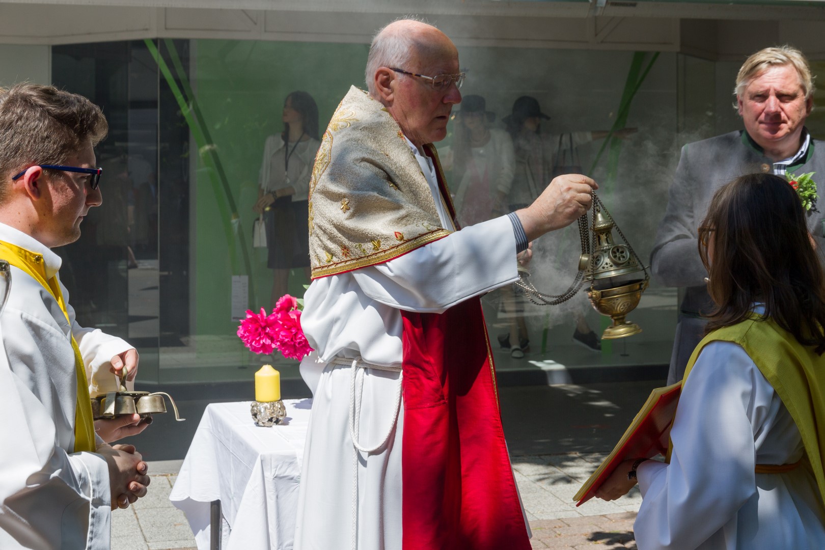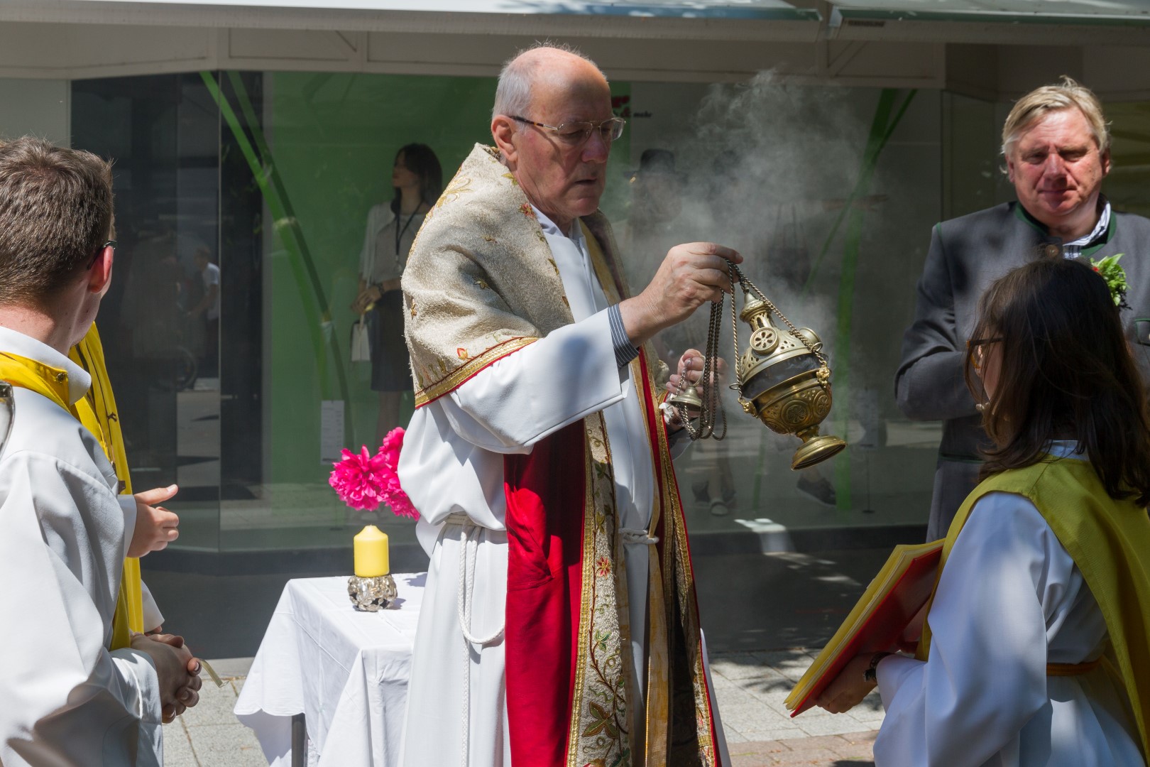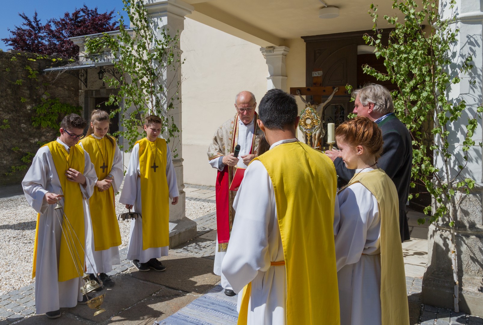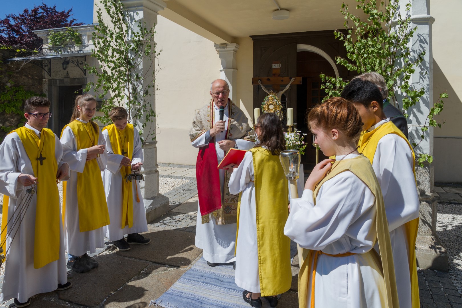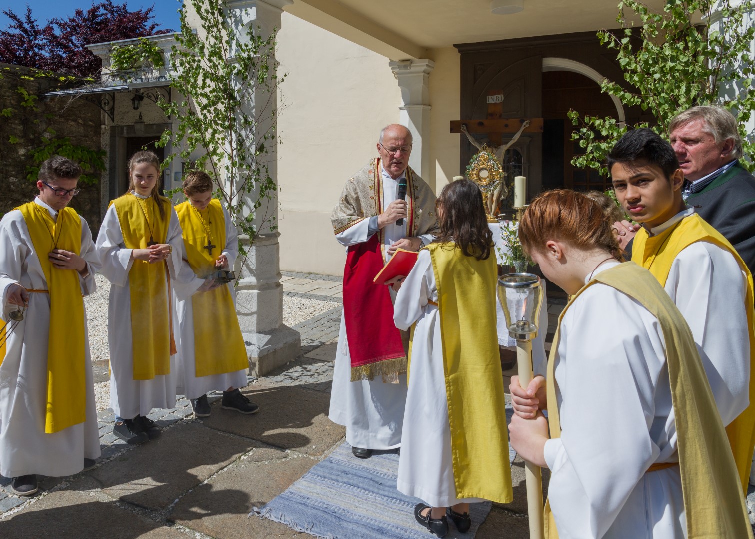 Am Donnerstag, den 26. Mai mit Beginn um 9.30 Uhr zelebrierte Dechant Mag. Engelbert Hofer in der Stadtpfarrkirche St. Markus zusammen mit zahlreichen Gläubigen sowie verschiedenen Traditionsträgern, Vereinen und Gruppen, den Festgottesdienst zum Hochfest Fronleichnam, des Leibes und Blutes unseres Herrn Jesus Christus.